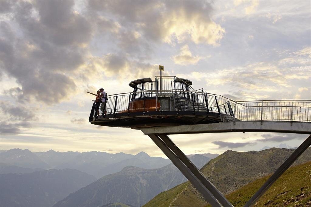 Auf 2.600 Meter bei der Almbahn Bergstation direkt am Zwölferkopf bietet die moderne Aussichtsplattform "Z1" atemberaubende Ausblicke über die Alpen. Es können die höchsten Berge von Deutschland, Tirol und Italien bestaunt werden.