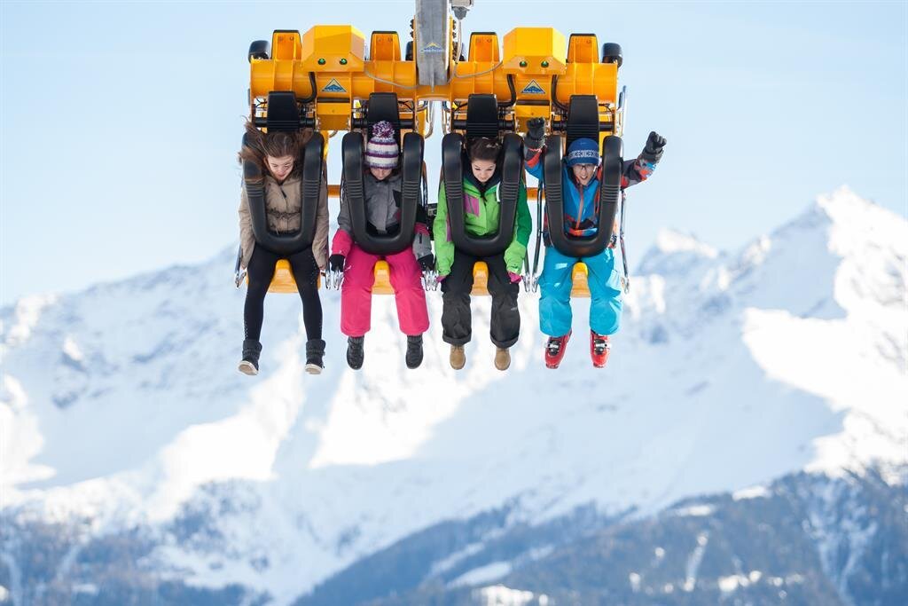Bis zu acht Personen haben in den Sesseln Platz, die speziell für Adrenalin-Junkies entwickelt wurden. Einmal eingestiegen und schon geht die Fahrt los. Drei verschiedene Levels, von leichtem Schaukeln bis zum Überschlag, werden allen Mutigen geboten. Übrigens auch im Winter …