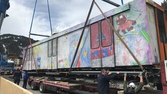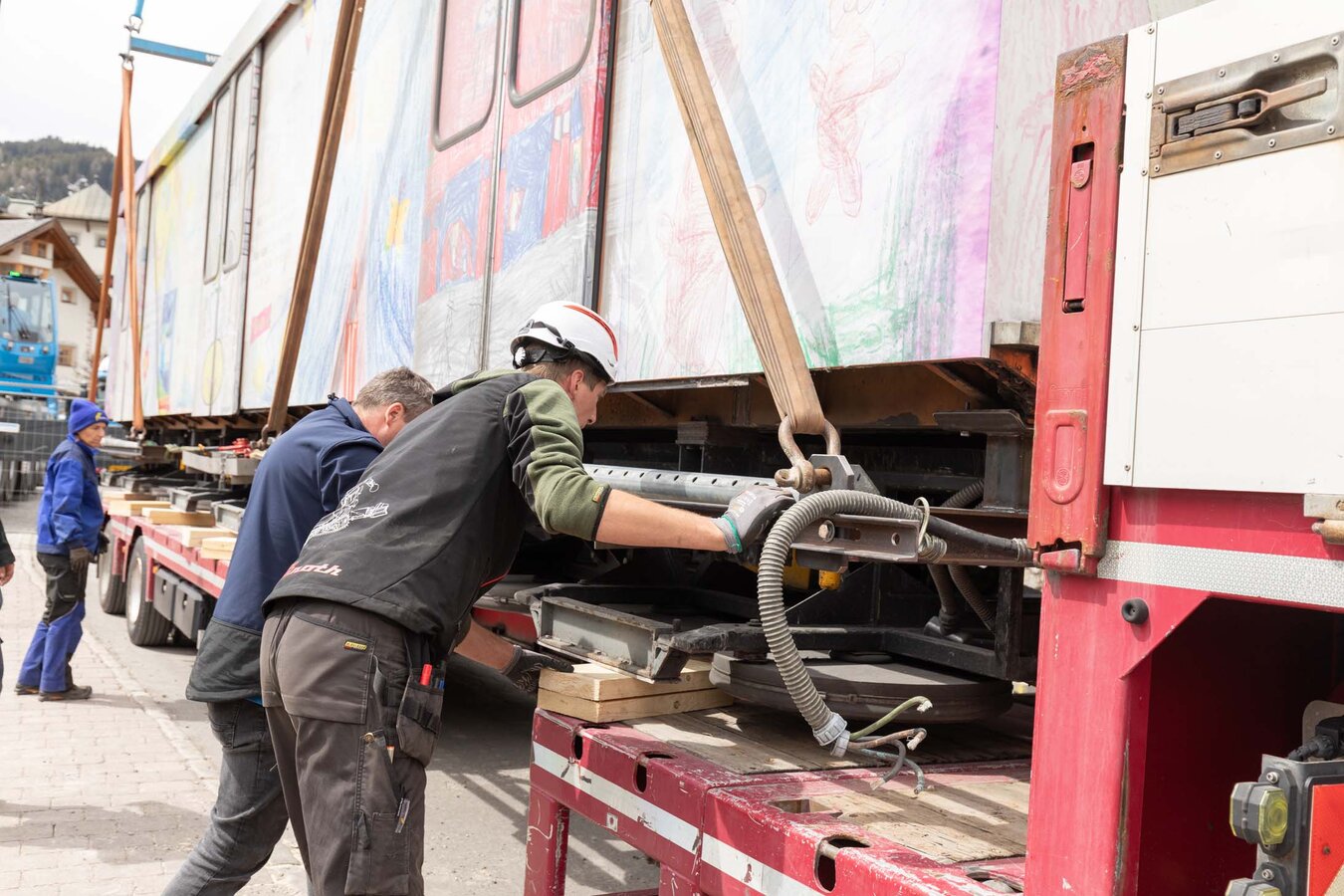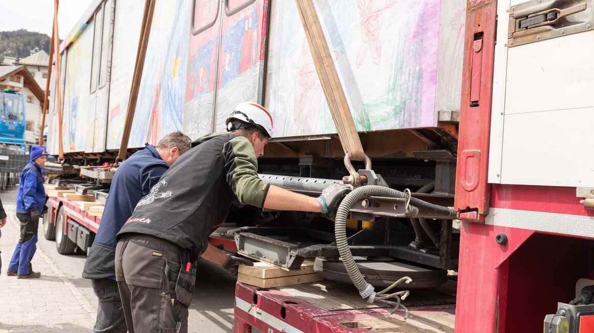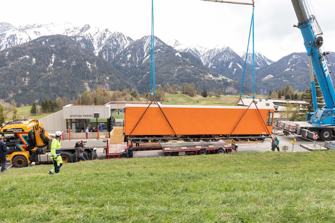 Aber auch an den neuen Wagons wird fleißig gearbeitet - die Produktion findet in Saint-Chef nahe von Lyon in Frankreich statt. Vom 7. bis 9. Mai wird die Firma Kneringer aus Prutz in Frankreich vor Ort sein, um der Bahn das neue Design zu verpassen und die aufwendigen Beklebungsarbeiten durchzuführen. Die neue Bahn besteht aus drei Wagons, die im Inneren komplett durchgängig sein werden. Die Anlieferung nach Serfaus erfolgt dann am Freitag, den 17. Mai. Nach einem Wochenende frischer Tiroler Bergluft heißt es dann ab Montag, den 20. Mai, auch für die neuen Garnituren – ab in den Tunnel. Hinein kommen die Wagons wie in den 80er Jahren, durch die Deckenöffnung am Ortseingang. Die Öffnung wird im Anschluss erneut verschlossen und auch zukünftig wieder nicht mehr sichtbar sein.