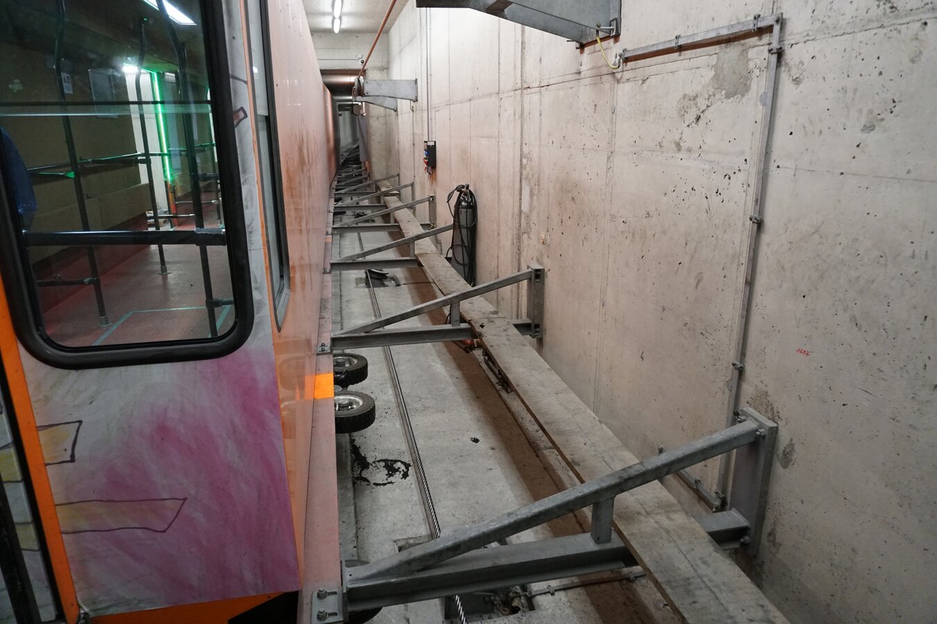 Bis die neuen, komfortablen, aber vor allem größeren Wagen angeliefert werden ist allerdings noch sehr viel Arbeit zu erledigen. Aber wie können die Wagen größer sein, wenn der Tunnel unverändert bleibt? Ganz einfach, das Innere der Wagen wird noch optimaler ausgenützt, die Führungsschienen im Tunnel werden auf das Notwendigste minimiert, und somit steht im Inneren mehr Raum zur Verfügung. Die Arbeiten im Tunnel laufen auf Hochtouren, sämtliche Führungsschienen, Halterungen und Seilrollen müssen entfernt bzw. wieder neu montiert werden. Um diese Arbeiten termingerecht zu erledigen, wird derzeit rund um die Uhr im Schichtbetrieb gearbeitet.