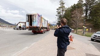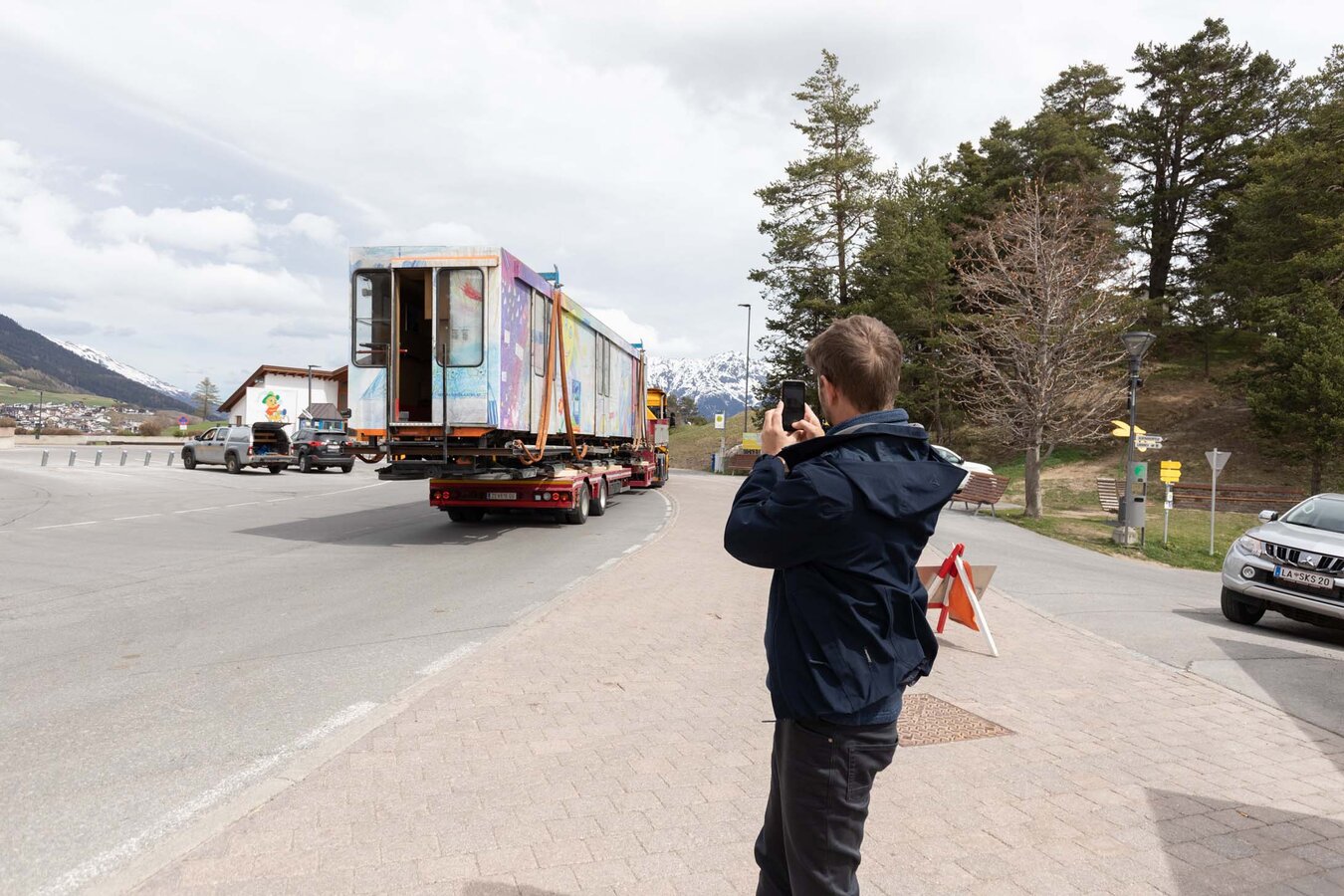 Da ziehen sie dahin, die alten Wagons der U-Bahn Serfaus. „Ich war damals schon dabei, als sie geliefert wurden. Jetzt seh ich sie wieder“, schildert ein Zeitzeuge am Schauplatz bei der Station Parkplatz.