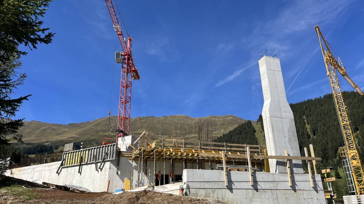 Die Rohbauarbeiten an der Zwischenstation gehen zügig voran. Der Gondelbahnhof für die im Erstausbau 104 Gondeln sowie die Wände für das restliche Untergeschoss sind bereits fertiggestellt. Die Betonarbeiten an der Kellergeschossdecke werden demnächst abgeschlossen. Derzeit wird mit Hochdruck am Mannschaftsraum, den (öffentlichen) WC-Anlagen und einem Lagerraum gearbeitet. Im heurigen Jahr werden sämtliche Rohbauarbeiten abgeschlossen. Der restliche Ausbau bzw. die Montage und Fertigstellung der Station erfolgt im nächsten Jahr. Im südlichen Bereich wurde der Bahnhof bereits komplett hinterfüllt. Die Decke wird derzeit vollständig geflämmt, damit diese heuer noch humusiert werden kann. Der Bahnhof ist nach Fertigstellung von Außen nicht mehr sichtbar und komplett in das Landschaftsbild integriert.