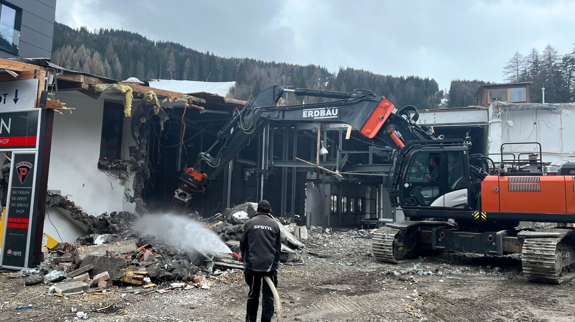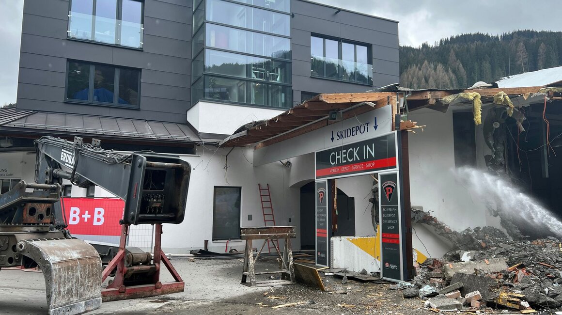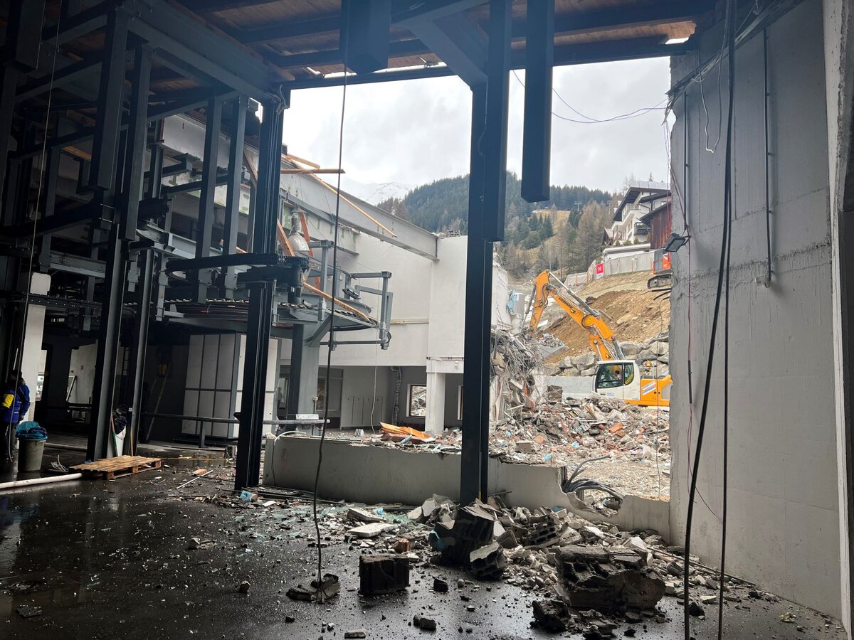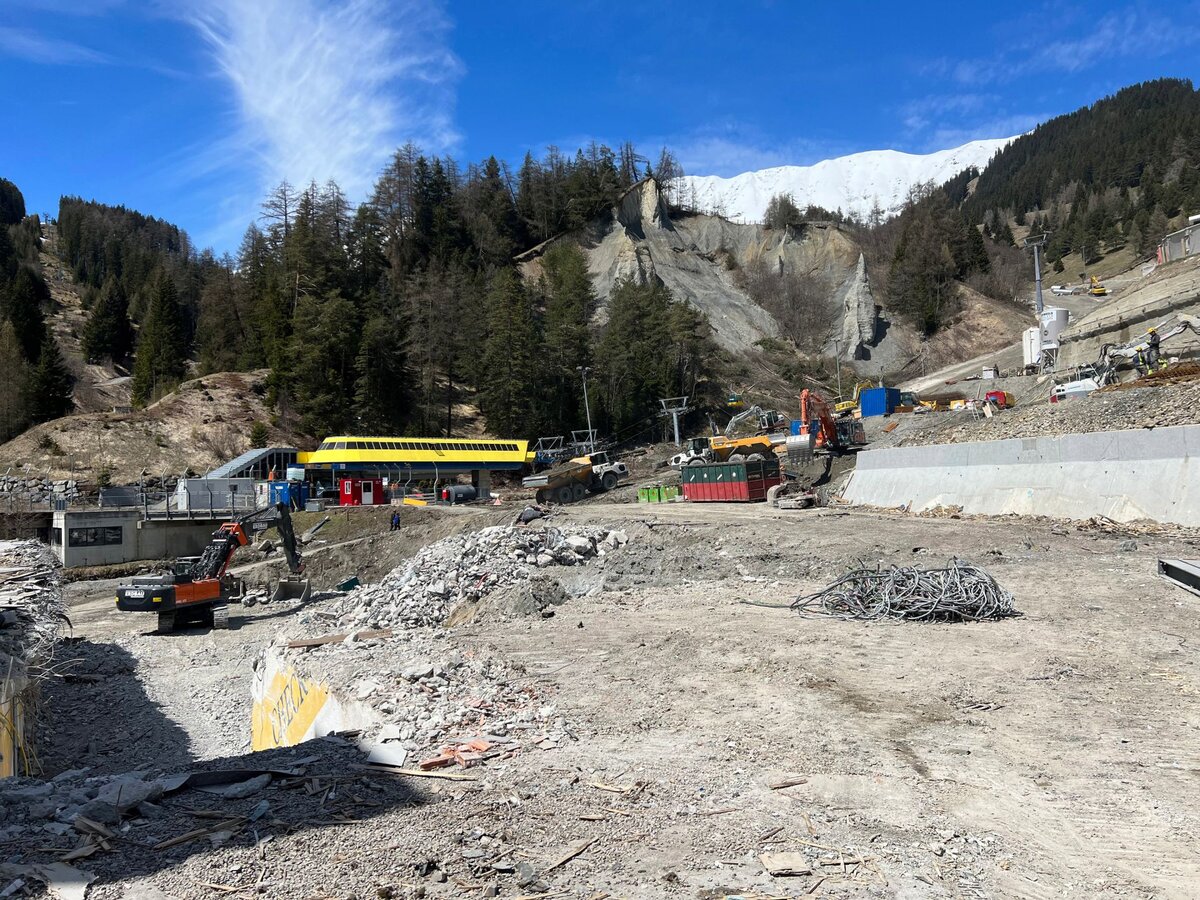 Gleichzeitig wird natürlich an der Berg- sowie der Zwischenstation fleißig gearbeitet. Die Abbrucharbeiten im Bereich des Skischulbüros am Komperdell sind großteils abgeschlossen, an der Zwischenstation hat die Firma Doppelmayr bereits mit der Montage begonnen.