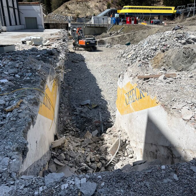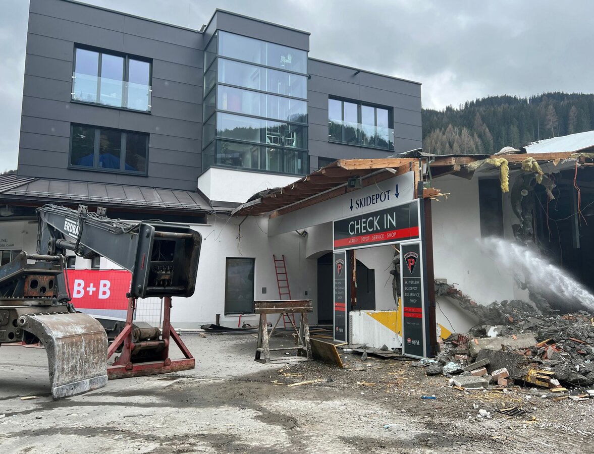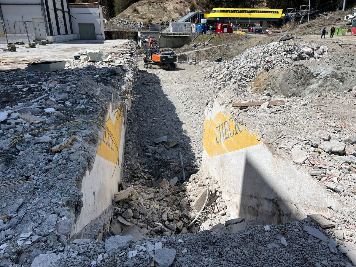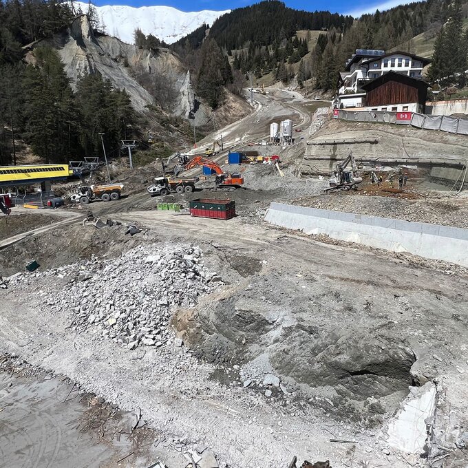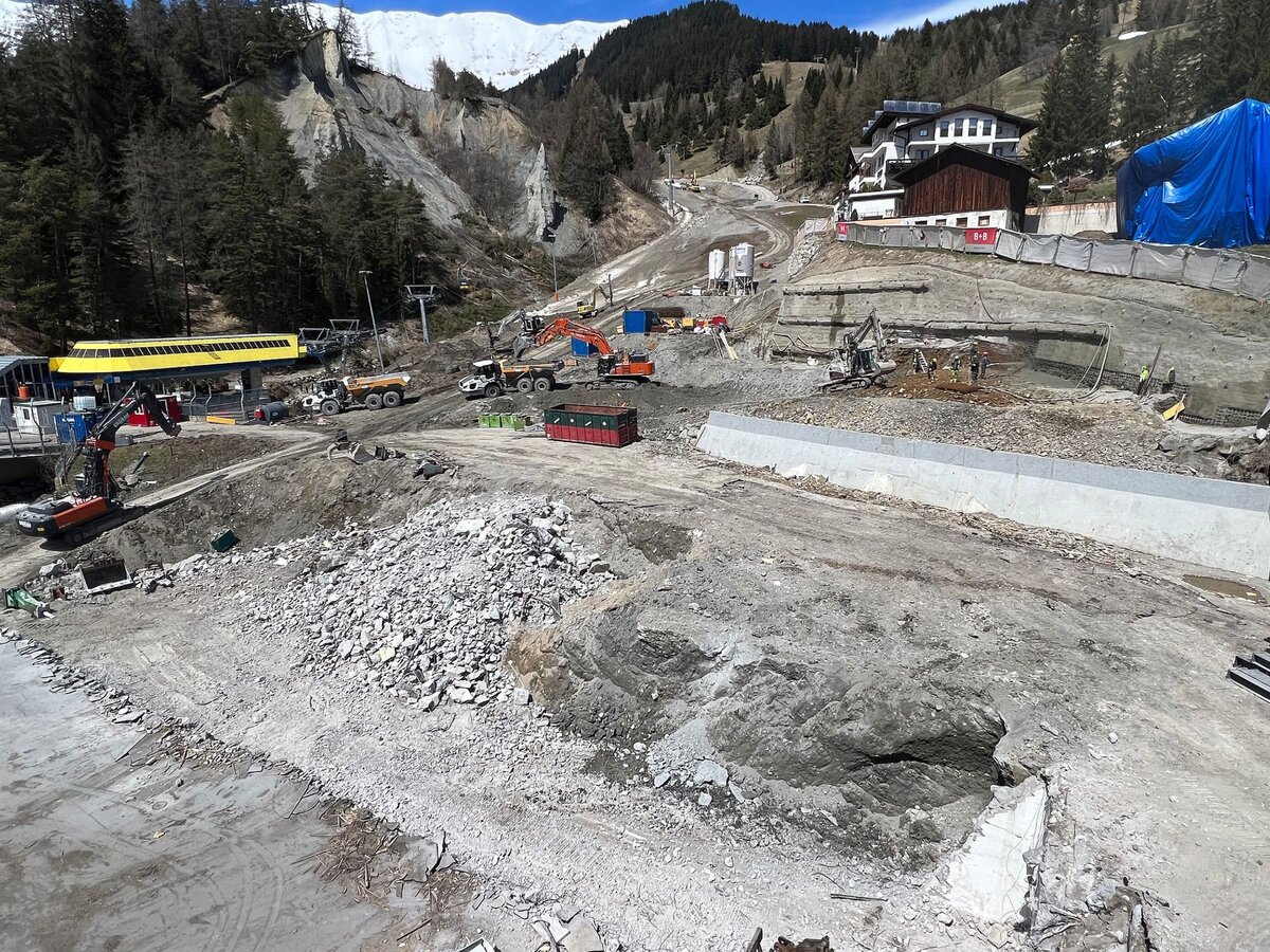 Jetzt kann es los gehen! Aktuell wird der Aushub gemacht, im Untergeschoss des neuen Talstationsbereiches entstehen insgesamt ca. 5.000 Skidepot-Stellplätze. Lager- und Mitarbeiterräume finden ebenfalls Platz. Das Aushubmaterial wird in der Mittelabfahrt unterhalb der neuen Zwischenstation wieder eingebaut, um eine tolle Pistenverbesserung zu erzielen und das Abfahren bis zur Talstation zukünftig zu erleichtern.