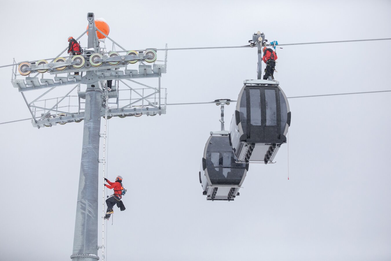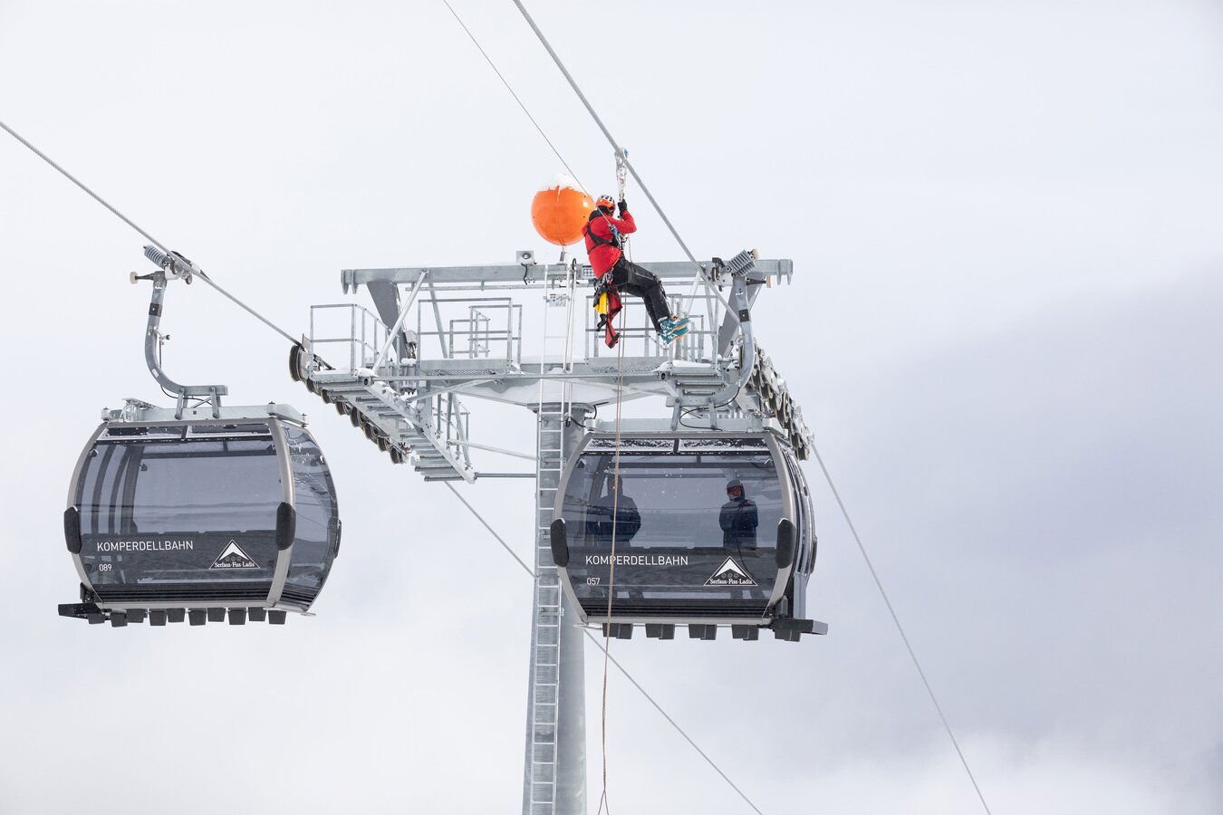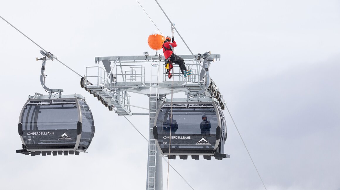 Um für den Ernstfall gerüstet zu sein, wurde bereits eine Bergeübung an der neuen Bahn durchgeführt. Zahlreiche Bergetrupps waren im Einsatz, um die 70 Fahrgäste sicher aus den Kabinen zu bergen. Das Wetter hätte „besser“ nicht sein können – Schneetreiben und eisige Temperaturen forderten die Rettungskräfte enorm heraus! Schlussendlich konnten alle Statisten erfolgreich geborgen werden - es war sowohl für die Retter als auch für die Fahrgäste ein besonderes Erlebnis!