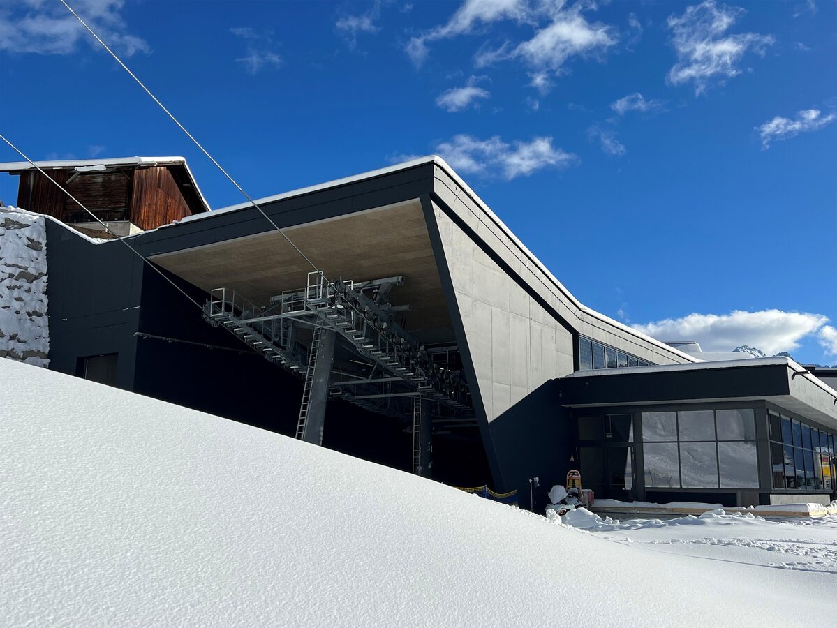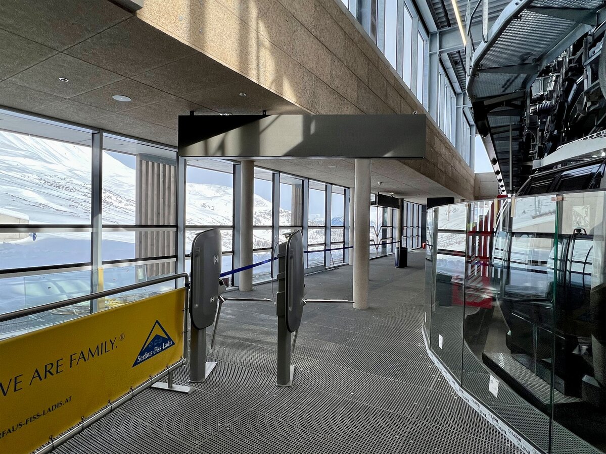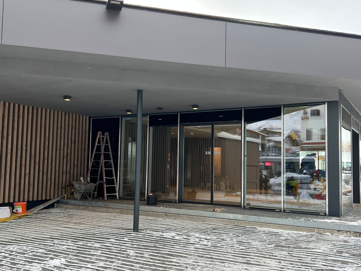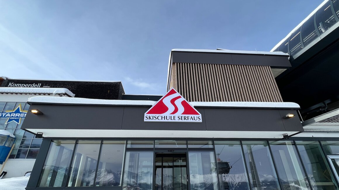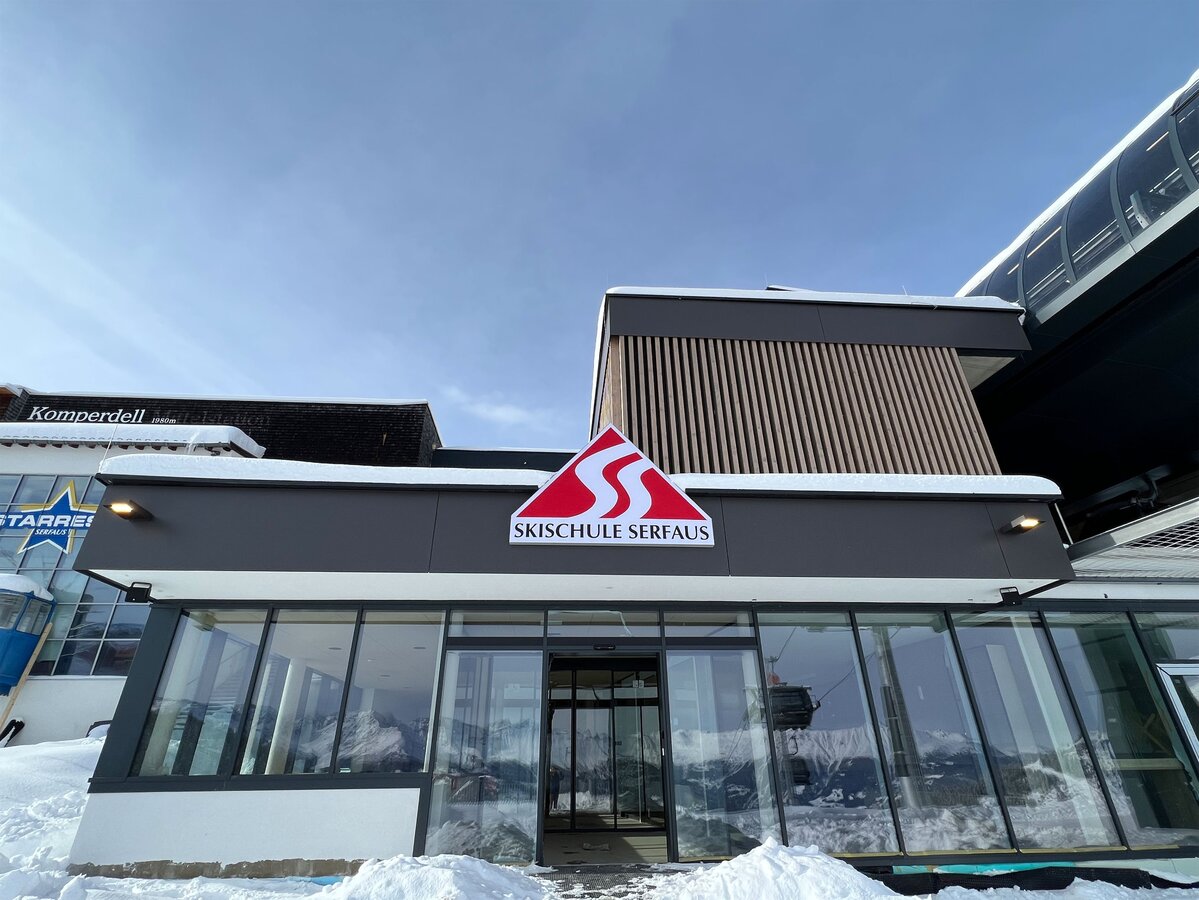 Auch in den weiteren Einrichtungen, die in der Tal- und Bergstation untergebracht sind, befinden sich die Arbeiten im großen Finale. In den neuen Räumlichkeiten des Check IN werden bereits fleißig Regale montiert, Skier und Skischuhe einsortiert sowie sämtliche digitale Anzeigen programmiert. Die Endstation unserer Sommer- und Winterattraktion Serfauser Sauser hat auch bereits ihren Platz am Dach des neuen Check IN gefunden. Die Einrichtung im neuen Skischulbüro in der Bergstation ist ebenfalls montiert, das große Skischullogo an der Aussenfassade ist platziert. Letzte Arbeiten in den neuen Räumlichkeiten werden derzeit noch durchgeführt.