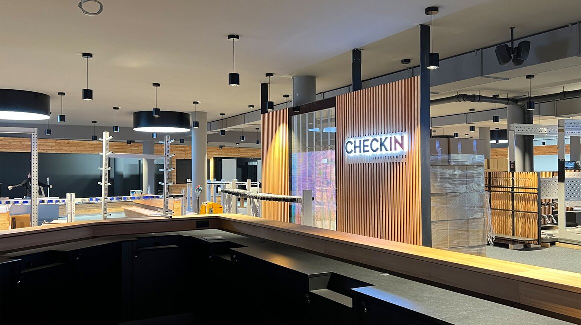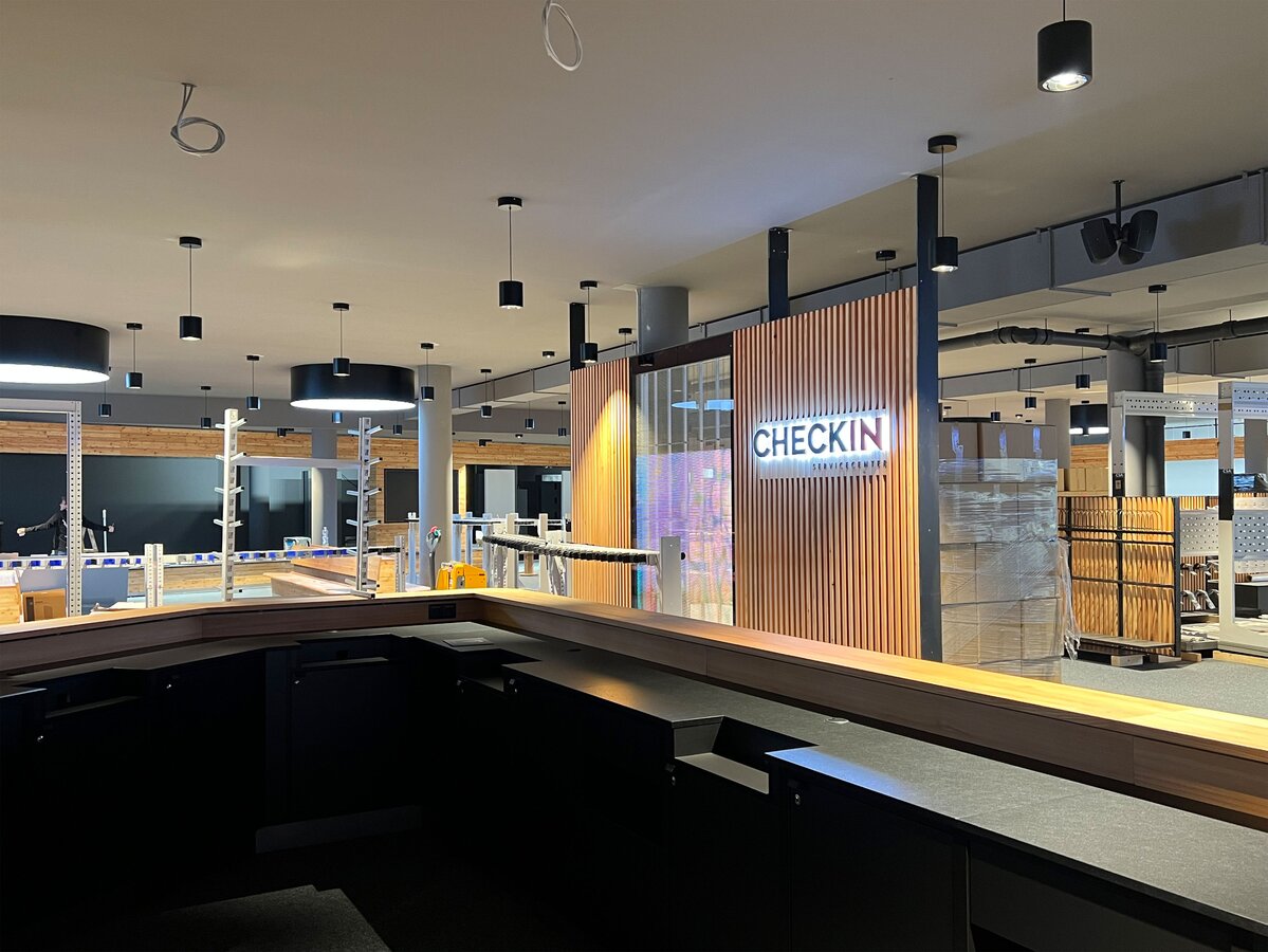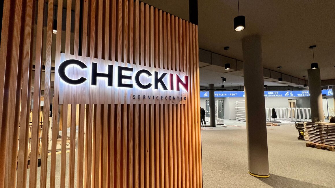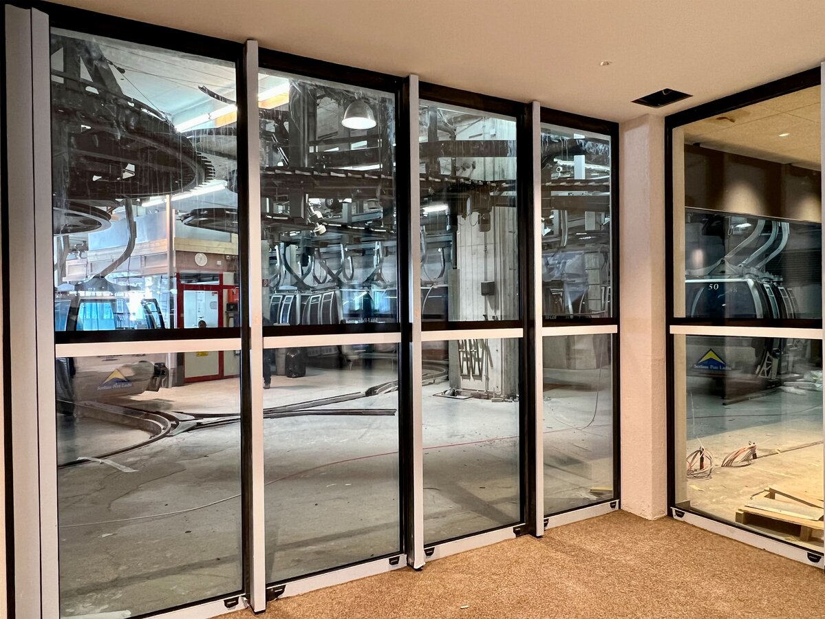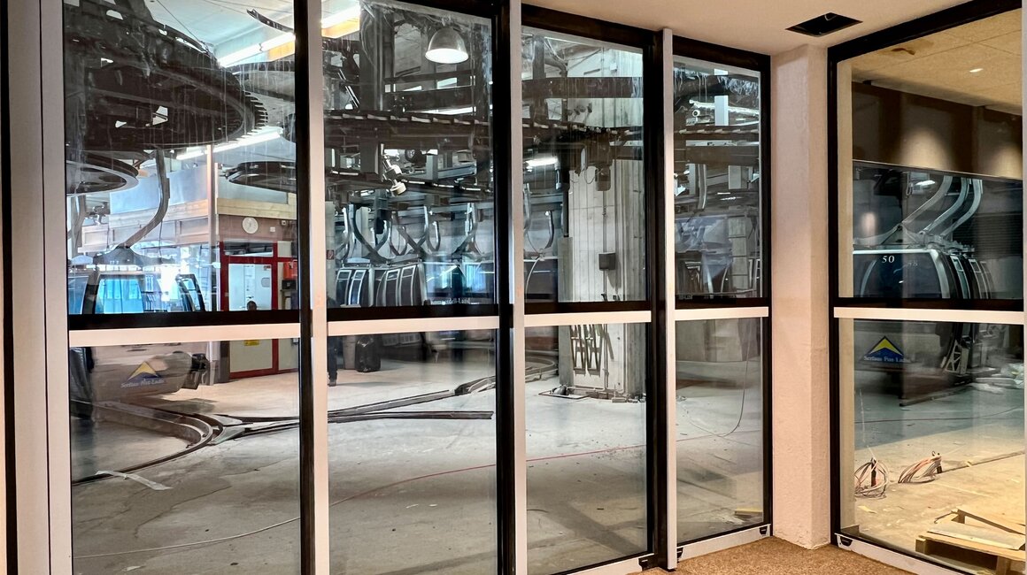 Auch in den weiteren Einrichtungen, die in der Tal- und Bergstation untergebracht sind, befinden sich die Arbeiten im großen Finale. In den neuen Räumlichkeiten des Check IN werden bereits fleißig Regale montiert, Skier und Skischuhe einsortiert sowie sämtliche digitale Anzeigen programmiert. Die Endstation unserer Sommer- und Winterattraktion Serfauser Sauser hat auch bereits ihren Platz am Dach des neuen Check IN gefunden. Die Einrichtung im neuen Skischulbüro in der Bergstation ist ebenfalls montiert, das große Skischullogo an der Aussenfassade ist platziert. Letzte Arbeiten in den neuen Räumlichkeiten werden derzeit noch durchgeführt.