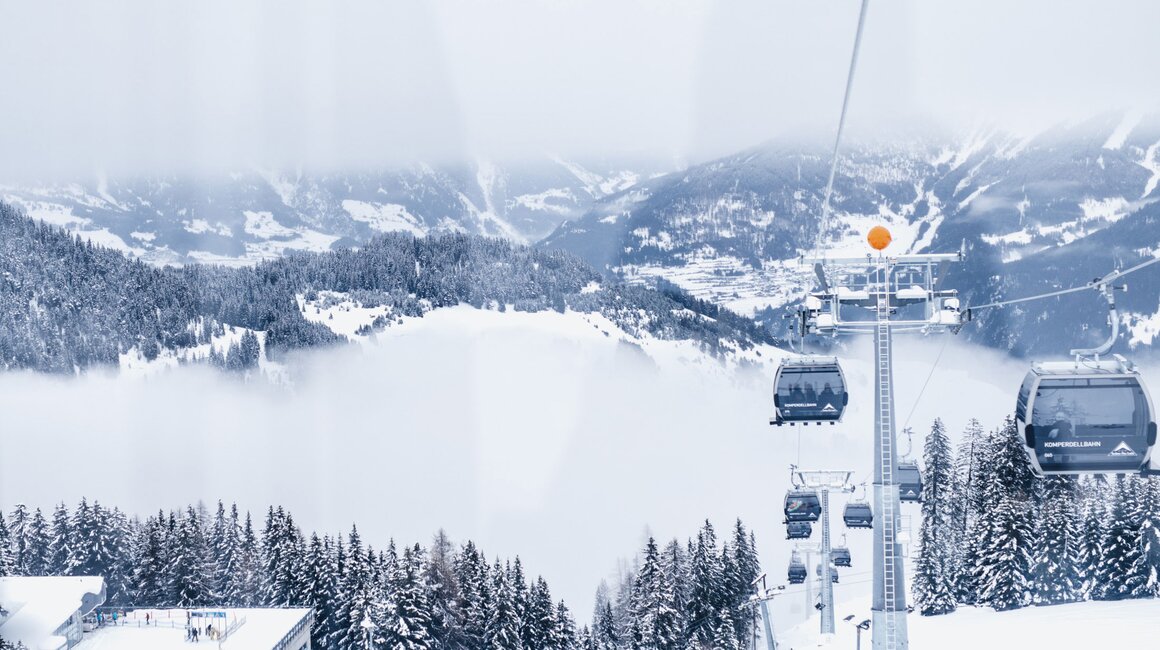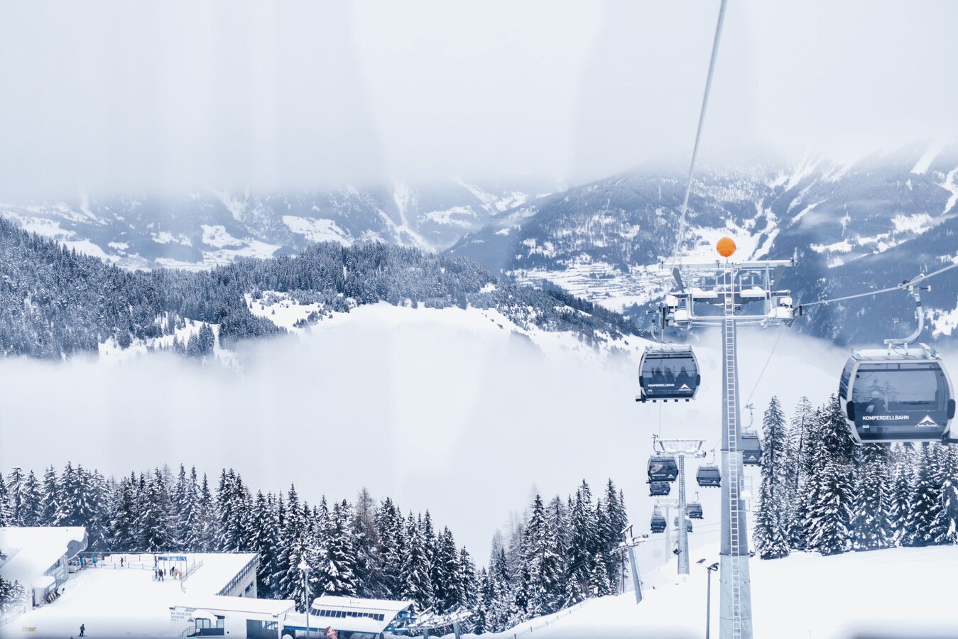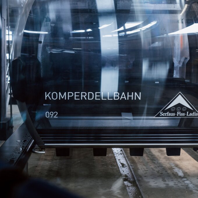 „Die Kabinen selbst sind eine Sonderanfertigung“, sagt Reini, als er auf einem der zehn Sitze in den Panoramakabinen Platz nimmt. „Die Firma Doppelmayr hat sie in Zusammenarbeit mit den Bergbahnen Serfaus-Fiss-Ladis speziell für uns entwickelt. Die Besonderheit daran ist, dass sie sehr geräumig sind, weil die Ski seitlich neben dem Sitz abgestellt werden können. So kann man auch an der Zwischenstation ganz bequem aussteigen, selbst wenn man es sich auf einem der hinteren Sitze der Kabine gemütlich gemacht hat.“ Zusätzlich bietet jede Kabine durch die Komplettverglasung einen beeindruckenden Panoramablick. „Der ist zwar heute durch Nebel getrübt, aber wenn man hier bei gutem Wetter nach oben fährt – oder schon eher schwebt! – ist das ein Wahnsinn“, freut sich Reini.