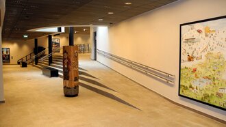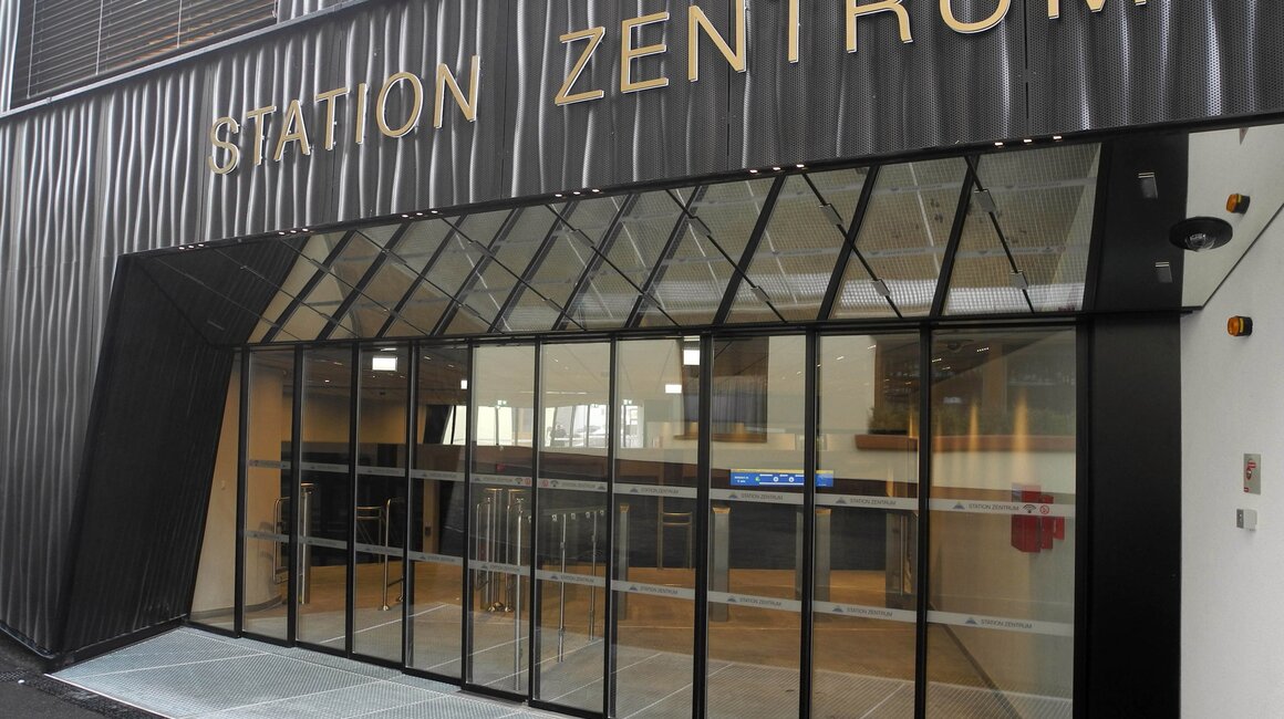 Der neue Zugang erfolgt mehr oder weniger ebenerdig. In der Station selbst ist der geringe Höhenunterschied entweder über eine Treppe oder über eine leicht abfallende Rampe überwindbar. Zusätzlich ist ein Treppenlift installiert, der ganz einfach zu bedienen ist. Die große Glasfront, in der die Schiebetüren integriert sind, sorgt für eine optimale Nutzung des Tageslichts. Ein zusätzlicher Lichtschacht bringt noch mehr Helligkeit in die Station.