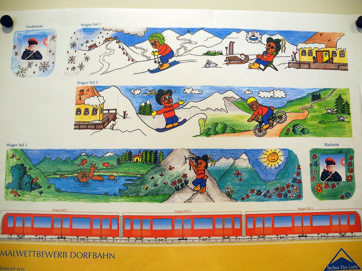 Es war keine leichte Entscheidung, das kann vorweg schon gesagt werden! Zahlreiche tolle Zeichnungen, aber auch professionell gestaltete Entwürfe haben uns erreicht. Die Wahl ist dann aber doch auf eine gezeichnete Version gefallen. Beim Siegerbild hat uns vor allem der Bezug zu Serfaus, im speziellen zu den Kindern überzeugt. Die Darstellung unseres Maskottchens Murmli im Sommer wie auch im Winter und natürlich die Einbindung der verschiedenen Attraktionen haben schlussendlich zum Sieg geführt! Allen anderen Teilnehmern noch einmal vielen Dank für die tollen Einsendungen!
