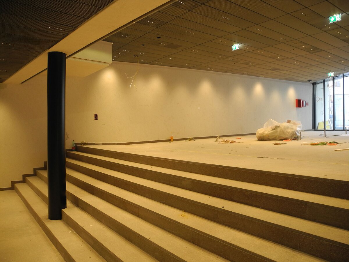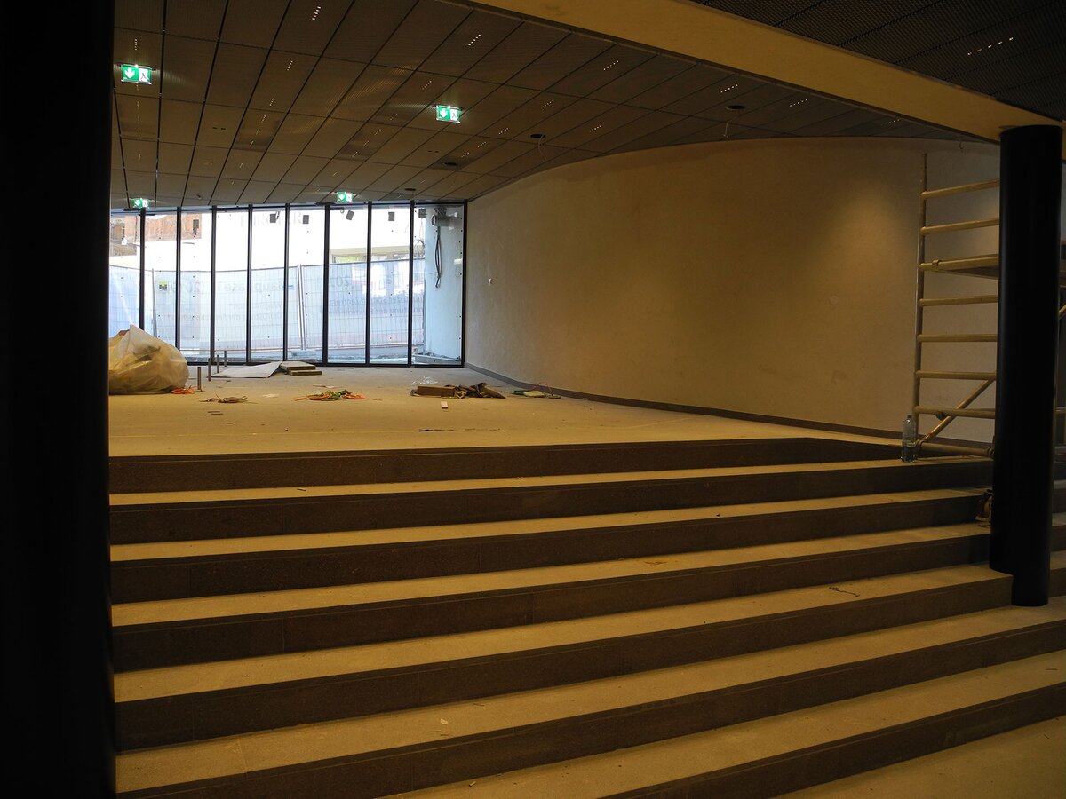 Wie bereits mehrfach angekündigt ist die Station Zentrum während der Sommersaison 2018 nicht zugänglich. Die U-Bahn ist regulär in Betrieb, bleibt aber in dieser Station nicht stehen. Die Bauarbeiten schreiten zügig voran, die Station macht bereits einen ziemlich fertiggestellten Eindruck. Aktuell wird der Aussenbereich mit einer Fussbodenheizung ausgestattet bzw. erfolgen letzte Asphaltierungsarbeiten. Betritt man die neue Station wird man sofort von der Größe und der Helligkeit überrascht! Zur Erinnerung - der bisherige Zugang verlief über eine steile Treppe hinunter zum Bahnsteig, wo natürlich überhaupt kein Tageslicht mehr einfiel. Jetzt sorgen große Schiebetüren, sowie ein zusätzlicher Lichtschacht für eine angenehme Atmosphäre in der Station.