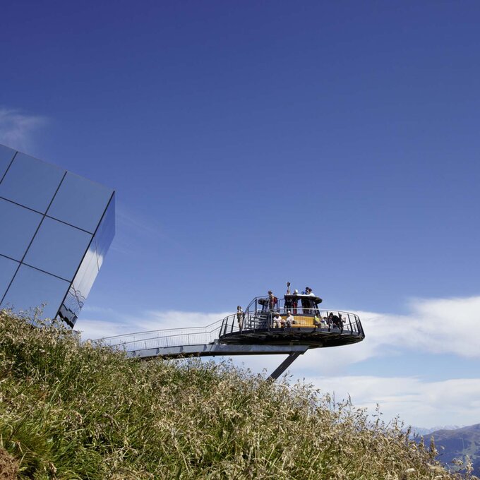 Am Zwölferkopf in Fiss, auf 2.600 Metern Höhe gelegen, befindet sich die moderne Aussichtsplattform Z1. Sie liegt direkt bei der Bergstation der Almbahn und ist sowohl im Sommer als auch im Winter ein sehr beliebtes Ausflugsziel für Besucher in Serfaus-Fiss-Ladis. Von hier oben aus hat man freie Sicht auf die höchsten Berge. Bis nach Deutschland, in die Schweiz und Italien reicht der Blick. Einfach atemberaubend!