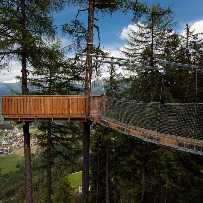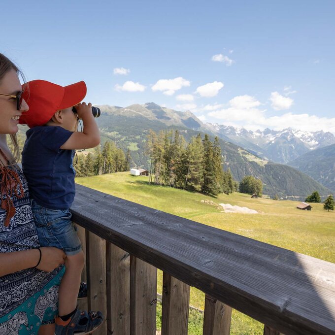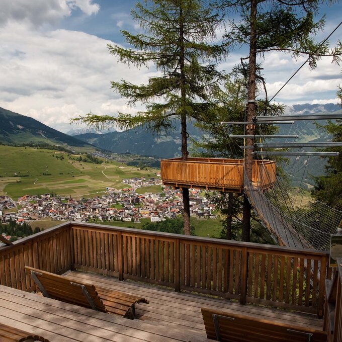 Den Aussichtspunkt erreicht man über den Six-Senses-Weg. Entlang des beliebten Themenweges gibt es so einiges zu erleben - und das mit allen Sinnen! Die liebevoll gestalteten Stationen laden nicht nur zum Entdecken ein, sondern regen auch zum Nachdenken und Innehalten an. Hier geht es ganz und gar darum, die Natur mit allen Sinnen zu erleben, zu erspüren und zu erfahren. Das Plätschern des Wassers ist ständiger Begleiter auf diesem Weg. Eine Vielzahl an Bächen, Wasserläufen und Brunnen säumen den speziell bei Familien sehr beliebten Weg. Ein wahrer Genuss für alle Sinne! Der Start dieses Weges ist das Murmliwasser. Von dort verläuft der kinderwagentaugliche Weg über den Högsee und den Erlebnispark Hög, mitten durch den Wald, bis nach Madatschen. Von dort führt dann eine asphaltierte Straße zurück ins Dorf nach Serfaus. Die Aussichtsplattform ist auf dem Teilstück zwischen Hög und Madatschen zu finden. Für diese Tour sollte man genügend Zeit einplanen, um die einzelnen Stationen und vor allem auch den Adlerhorst ohne Zeitdruck genießen und erleben zu können. Insgesamt benötigt man hier ca. 4 Stunden.