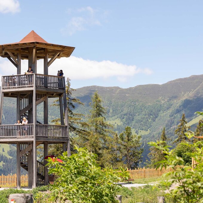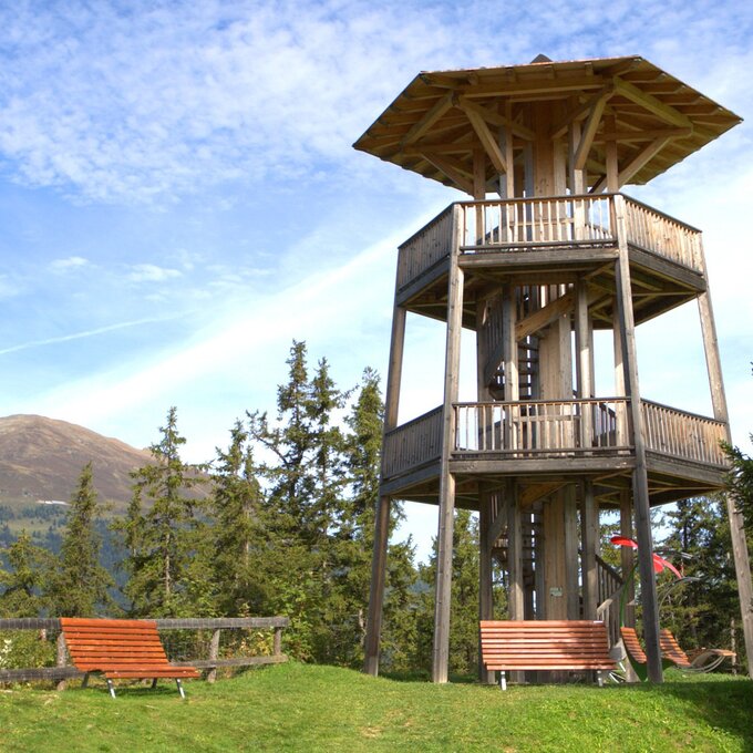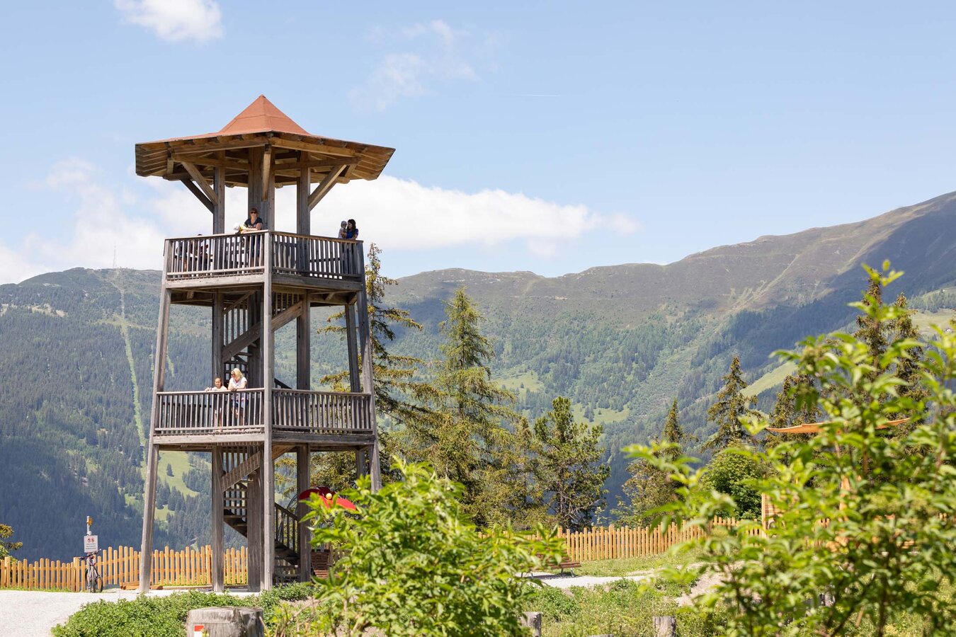 Der Aussichtsturm im beliebten Erlebnispark Hög bietet nicht nur einen wunderschönen Rundblick über das ganze Areal und die umliegende Bergwelt, sondern ist gespickt mit ganz vielen interessanten Infos zum Thema Holzwirtschaft. Kleine Infotafeln beschreiben für Wissensdurstige die zahlreichen und weit sichtbaren Berggipfel. Speziell an sonnigen Tagen lässt es sich rund um den Högsee sehr gut aushalten. An heißen Tagen herrschen hier, hoch über Serfaus gelegen, angenehme Temperaturen.