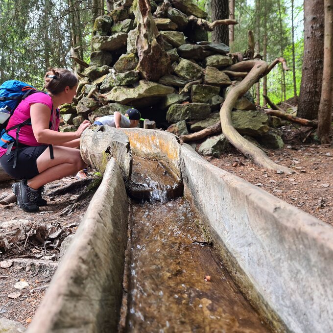 Schließlich erreicht man das Ziel: die Sauerbrunnquelle. Schon seit 1571 suchen Fremde und sogar Fürsten aus Südtirol, der Schweiz und Bayern diese Quelle auf, um ihre heilende Kraft zu nutzen. Es ist spannend zu erfahren, wie der "Tiroler Sauerbrunn" auch heute noch bei verschiedenen gesundheitlichen Beschwerden verwendet wird. Vor Ort besteht die Möglichkeit das Wasser zu verkosten und sich seine Trinkflasche für zu Hause abzufüllen, um von den wohltuenden Eigenschaften zu profitieren.
