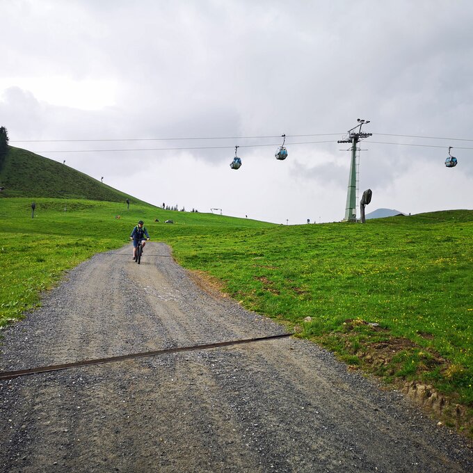 Je nach Gondelart wird das Bike in der Kabine oder außen an einer Spezialaufhängung im Skiköcher transportiert. Besonders E-Bikes, die doch über ein paar Kilos mehr verfügen, sind für die Bergbahnmitarbeiter ein wahrer Kraftakt. Wird der Drahtesel in die Gondel geschoben, werden die Sitzbänke nach oben geklappt. Die freundlichen Bergbahnmitarbeiter stehen stets helfend zur Seite.