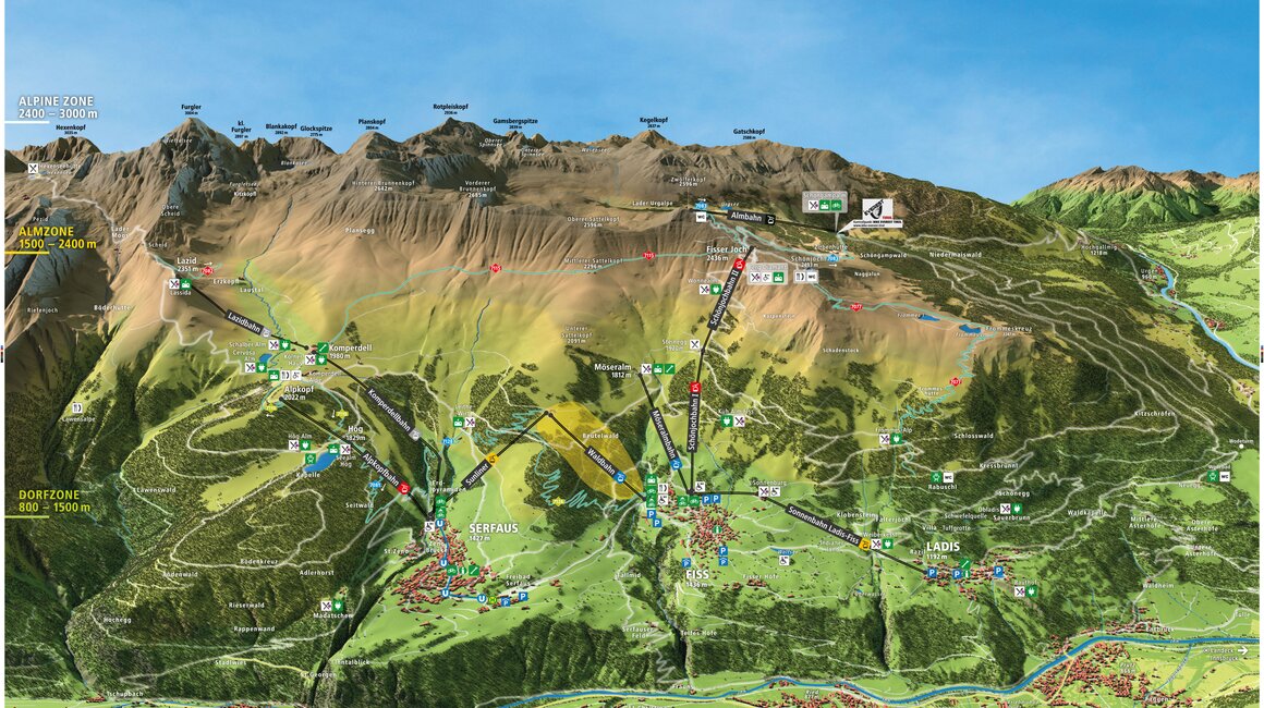 • Alle Pedalritter, die in Besitz einer Biketransport-Karte für die Schönjochbahn sind, können ihr Bike davor oder danach kostenlos mit der Sonnenbahn von Ladis nach Fiss befördern.