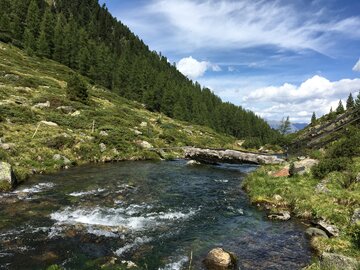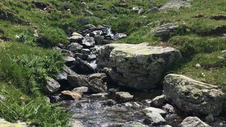 Das Urgtal ist ein schmales Seitental, in welchem sich ein rauschender Bach zwischen saftigen Bergwiesen durchschlängelt. Der Spinnseesteig führte uns ans Ende dieses Tales, bis zu einer Abzweigung, bei der man zu den Spinnseen (Oberer und Unterer Spinnsee) abbiegen könnte. Wir entschieden uns jedoch an dieser Stelle den Spinnseesteig zu verlassen, um auf dem Urgtalweg, einem schmalen Pfad, weiter durchs Urgtal zu wandern.