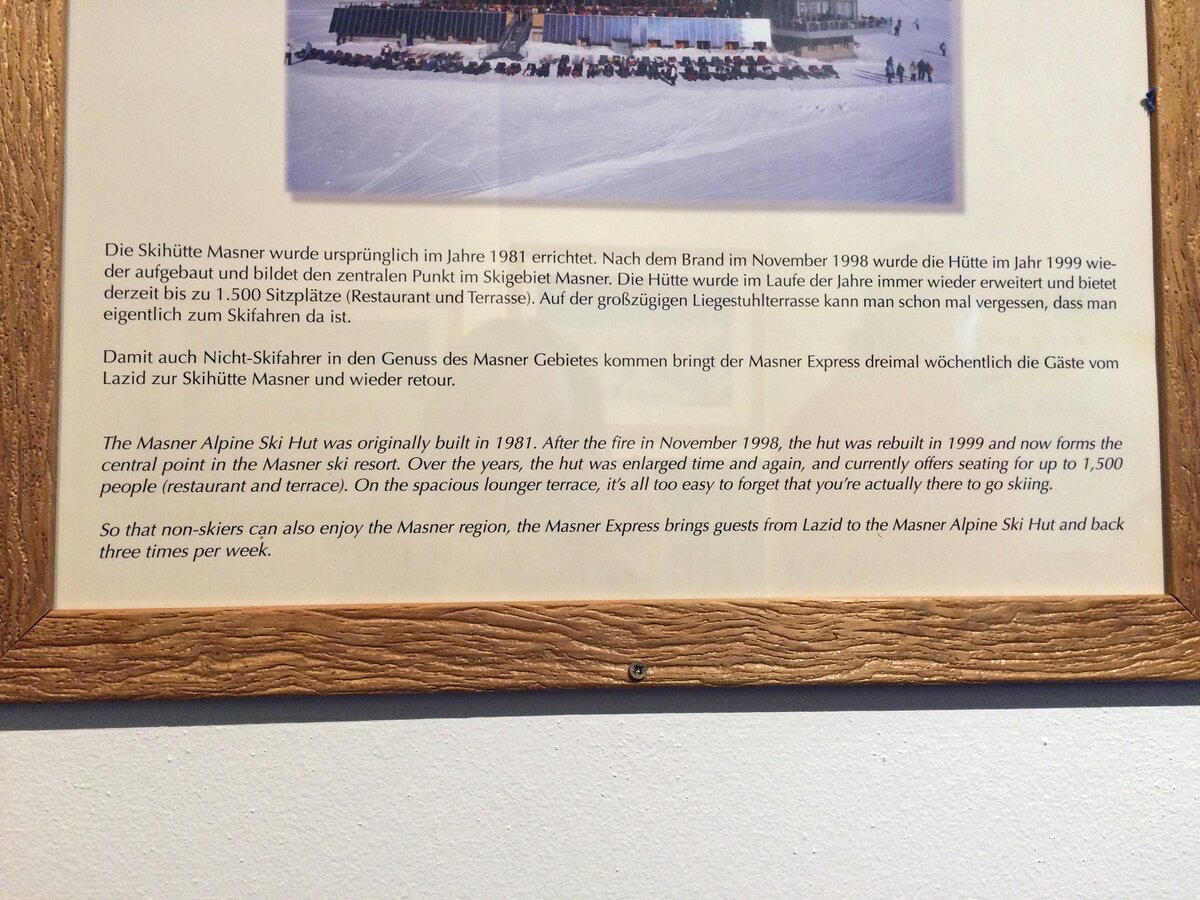 Nach etwa 20 Minuten Fahrt erreichten wir dann die Skihütte Masner bzw. das angrenzende Monte Mare Restaurant. Der Magen knurrte. Ich machte es mir auf der Sonnenterasse der Skihütte Masner bequem. In dieses schöne Plätzchen Erde zu gelangen, ohne dabei die Ski anschnallen zu müssen, ist wirklich ein Luxus. Besonders für Urlauber die nicht mehr allzu sicher auf den Brettern stehen, ist dieses Angebot optimal! So können auch Nicht-Skifahrer in den Genuss des Masnergebietes kommen.
