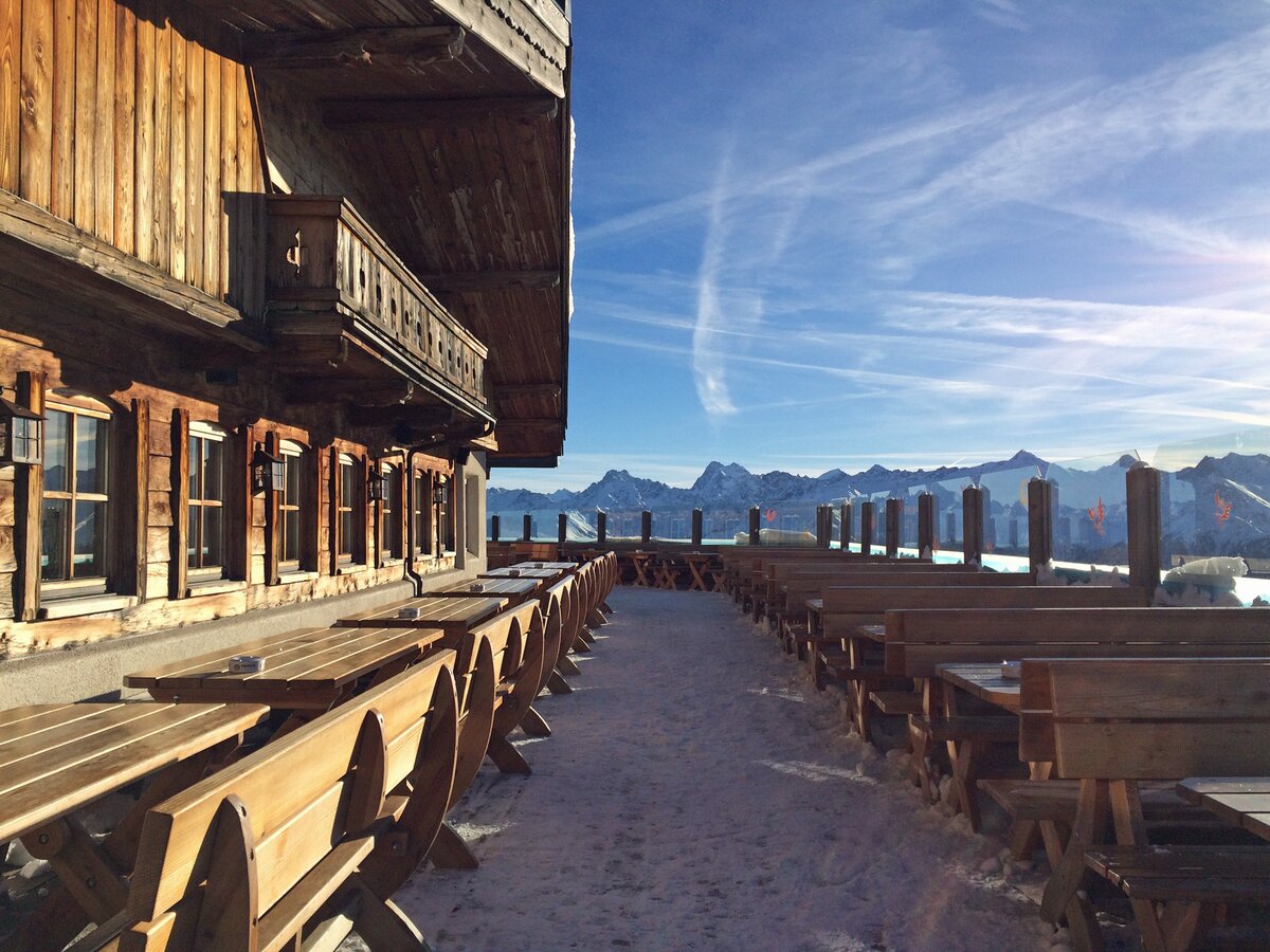 Nach einem wärmenden „Schnapsla“, einem Lutscher für den kleinen Moritz und imposanten Ausblicken auf Zugspitze und Co gondelten wir wieder zum Masner Express hinunter.