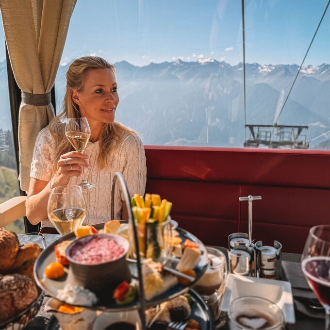 Ein Frühstück über den Gipfeln oder ein stilvolles Mittagessen mit Blick auf die Tiroler Bergwelt - in der Genussgondel wird Essen zu einem einzigartigen Erlebnis. In einer umgebauten Seilbahngondel gleitest du in aller Ruhe über das sonnige Hochplateau und genießt dabei nicht nur die spektakuläre Aussicht, sondern auch feinste regionale Köstlichkeiten.