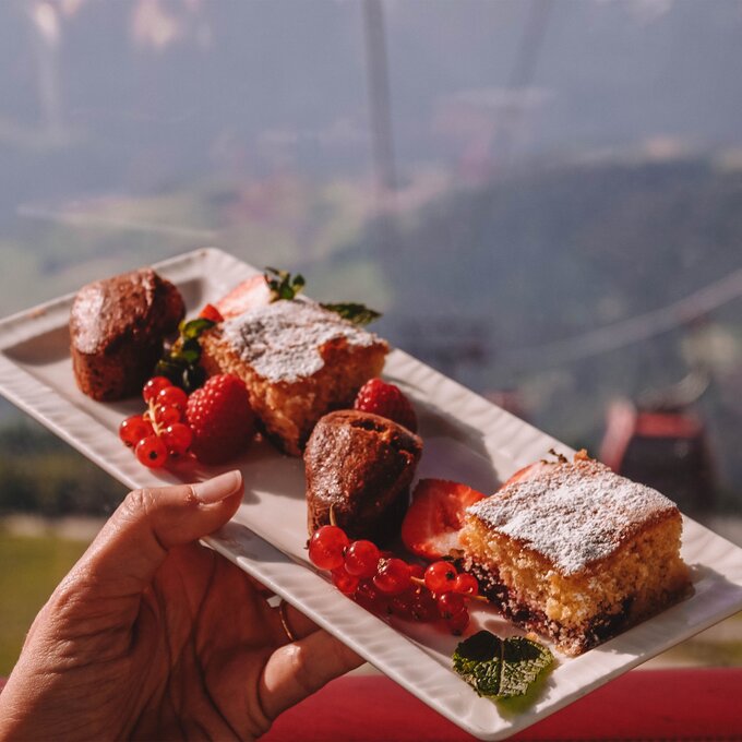 Zur Wahl stehen zwei mehrgängige kulinarische Höhenflüge: ein vielfältiges, liebevoll arrangiertes Frühstück mit frischen Produkten aus der Region oder ein feines Mittagsmenü, das mit alpiner Raffinesse überrascht. Serviert wird direkt in der Gondel, stilvoll gedeckt und in ganz privater Atmosphäre.