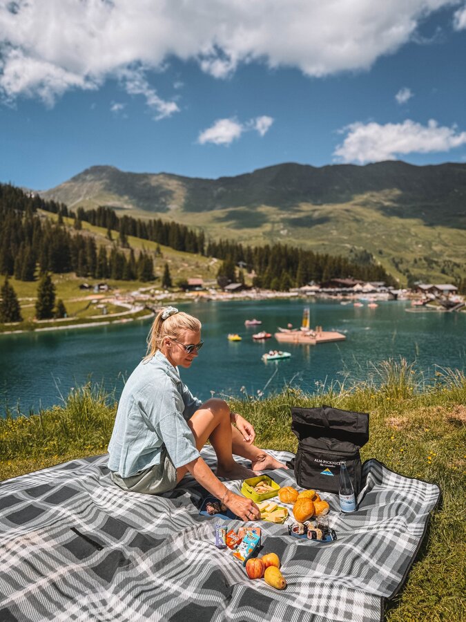 Mein Tipp: Mit dem Almpicknick-Rucksack, den du bei den Bergbahnen Fiss-Ladis vorbestellen kannst, wird auch die Rast am See zum Erlebnis: regionale Schmankerl, eine gemütliche Picknickdecke und als größte Genusszutat das märchenhafte Panorama! Das meiner Meinung nach schönste Plätzchen hierfür ist die Anhöhe mit der kleinen Kapelle am Ende des Sees. Abseits des Trubels ist es hier oben wunderbar ruhig und idyllisch.