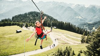 Schwindelfreiheit ist bei dieser Attraktion natürlich von Vorteil. Dennoch ist der Serfauser Sauser nicht nur für Eltern geeignet, auch größere Kids werden ihren Spaß daran finden. Je nach Gewicht ist der Flug nämlich auch gar nicht so rasant. Dafür sorgen die automatischen Bremsen. So kann die ganze Familie sicher einen berauschenden Tag genießen. Der Serfauser Sauser ist wirklich eine coole und familientaugliche Attraktion. We are family (action)! Auch im Nachbardorf im Sommer-Funpark Fiss wird für Adrenalinjunkies ziemlich viel geboten.