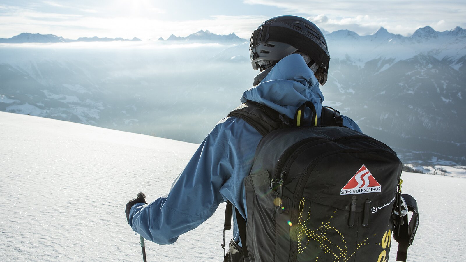 Drei Dinge sind wichtig. Erstens: Die äußeren Umstände. Wie sind Wetter- und Lawinenlagebericht, wie sind die Schneeverhältnisse und die Schneedecke? Der zweite Punkt ist der Faktor Mensch. Wie geht es mir heute, wie geht es meinen Begleitern? Ich muss mich am schwächsten Teilnehmer der Tour orientieren. Das Dritte ist die Ausrüstung. Wenn ich im freien Gelände unterwegs bin, habe ich drei Sachen immer dabei: Lawinenverschüttetensuchgerät (LVS), Sonde und Schaufel. Habe ich nur zwei von den dreien, habe ich im Gelände nichts verloren. Die Ausrüstung kann ich auch bei den Skischulen Serfaus oder Fiss-Ladis leihen.