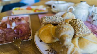 Das Beste kommt zum Schluss, sagt man doch so schön. Nach diesem spektakulären Sonnenaufgang kann ich mir das gar nicht vorstellen. Ich werde eines Besseren belehrt: Das Frühstück, dass wir in der Hexenseehütte serviert bekommen, schlägt wohl alle Frühstücksrekorde! Speck, Käse, frisches Gebäck und Eierspeise sind auf dem Holztisch angerichtet.