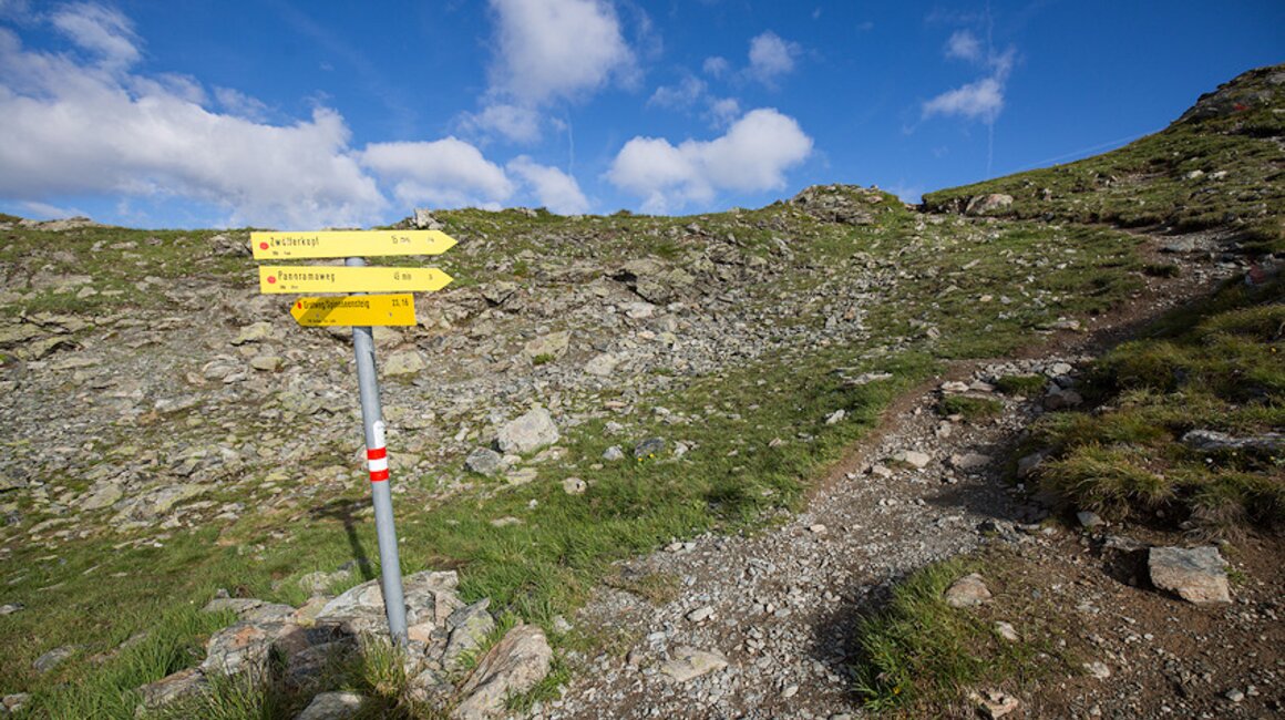 Für mich als Tiroler Naturführer und Naturfotograf aus Leidenschaft steht der Spinnseeweg schon seit Anfang Sommer auf meiner To-Do-Liste. Bei perfektem Wanderwetter starte ich die Tour von der Bergstation der Schönjochbahn in Fiss (Auffahrt mit der Schönjochbahn) aus. Der Weg Nr. 23 steigt bis zum Grat leicht an. Am Grat angekommen wird man mit einem wunderschönen Rundumblick belohnt. Nach etwa 25 Minuten hat man die Abzweigung "Spinnseeweg" erreicht.