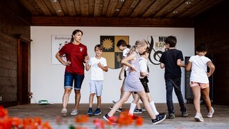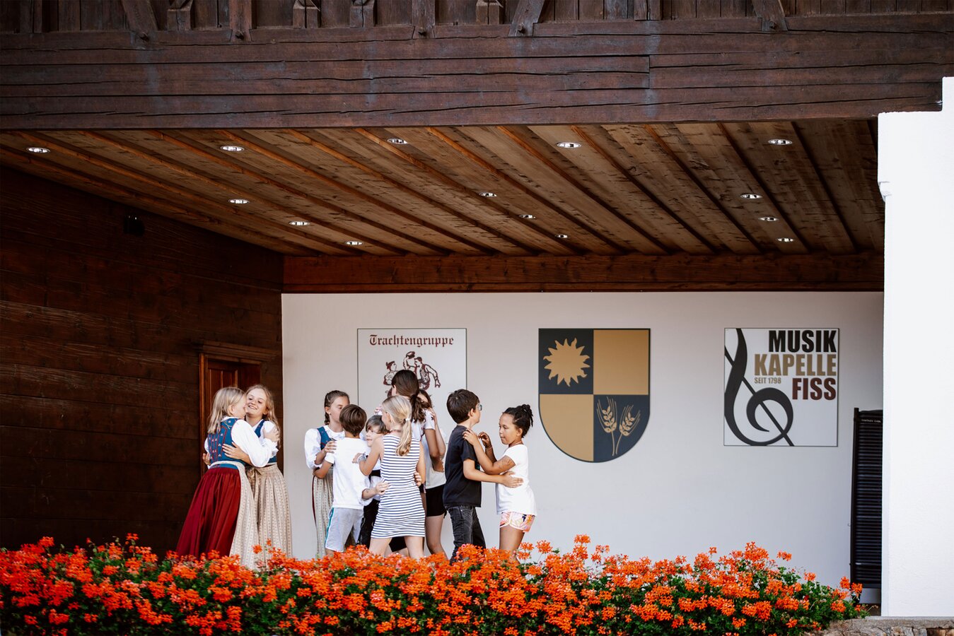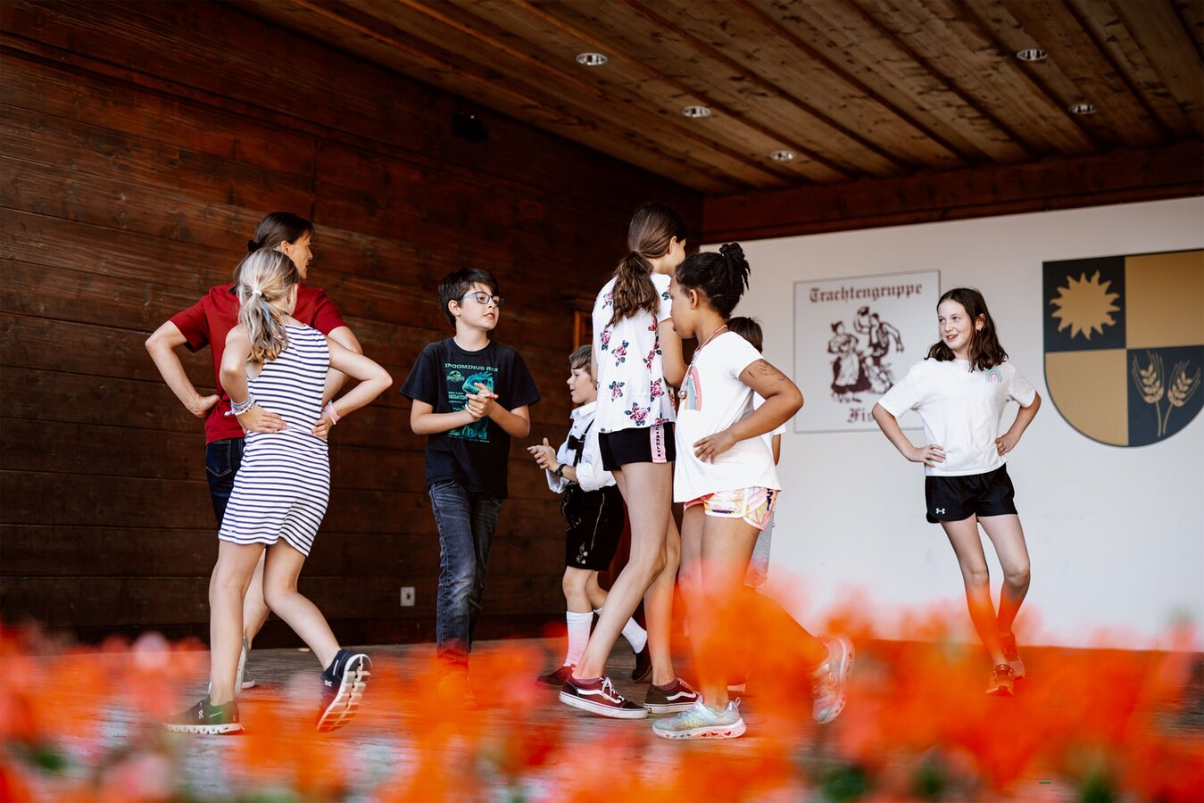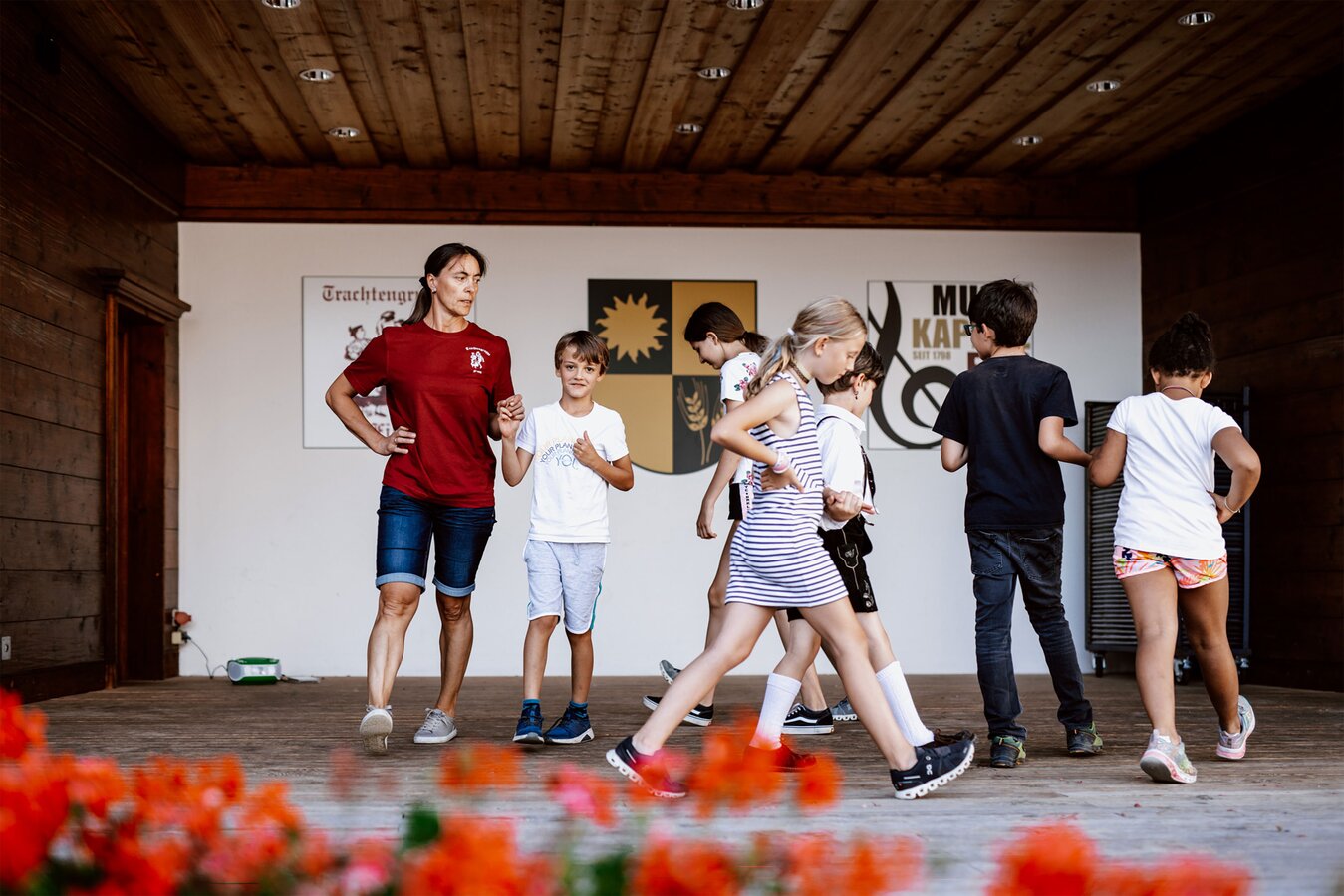 Nach der Aufwärmphase geht es für die Probe - und ein paar Fotos - auf die große Bühne des Pavillons im Ortszentrum von Fiss. Im angrenzenden Café haben ein paar Gäste Platz genommen, sie erhalten jetzt eine überraschende Zusatzvorstellung und man merkt schnell: Die jungen Tänzer beeindrucken das Publikum. Sind die Trainerinnen auch zufrieden? Die beiden schmunzeln. „Das Schönste für uns ist natürlich, wenn alles steht und wir einen Auftritt haben“, sagen Brigitte und Barbara. „Dann hat sich alles gelohnt!“