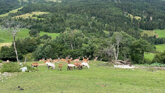 Erkundet die tierischen Bewohner von Serfaus-Fiss-Ladis. Vielleicht habt ihr ja Glück, beim Wandern oder Fahrradfahren Murmeltiere, Gämsen oder sogar den majestätischen Steinadler in ihrer natürlichen Umgebung zu sehen. In den Bergen von Serfaus-Fiss-Ladis findet ihr zahlreiche Kühe, die den Sommer auf den Almwiesen verbringen. Gelegentlich könnt ihr auch Pferden, Ziegen und niedlichen Schweinen begegnen. Um sicherzustellen, dass die Tiere ihre Sommerfrische auch genießen können, ist ein respektvoller und angemessener Umgang unerlässlich. Es ist besonders ratsam, stets einen ausreichenden Abstand zu den Almtieren zu wahren und sie nicht zu füttern. Die Tiere können genauso gut aus der Ferne bewundert werden. Auf unserer Website findet ihr hilfreiche Informationen und Tipps für ein respektvolles zusammenleben und ein Verantwortungsvolles Bergerlebnis.