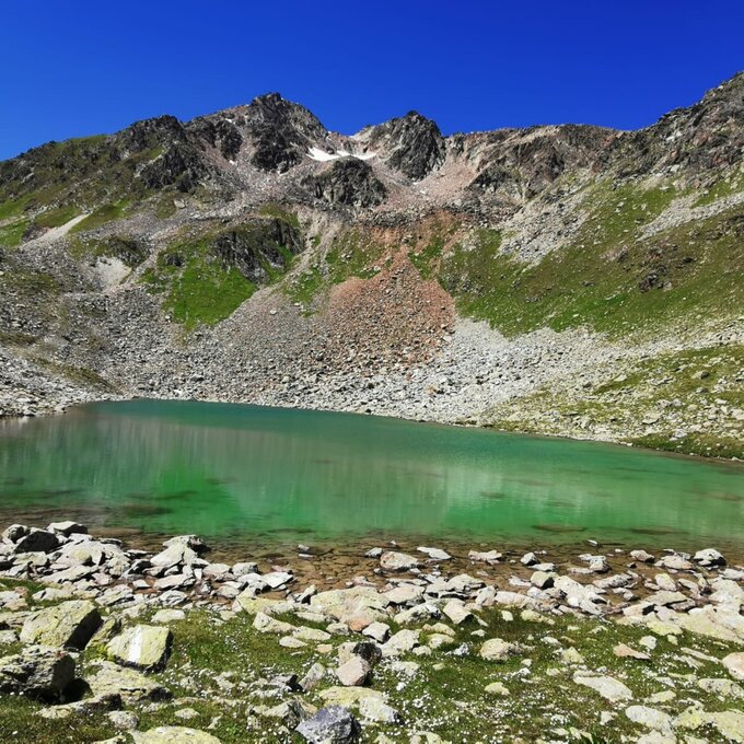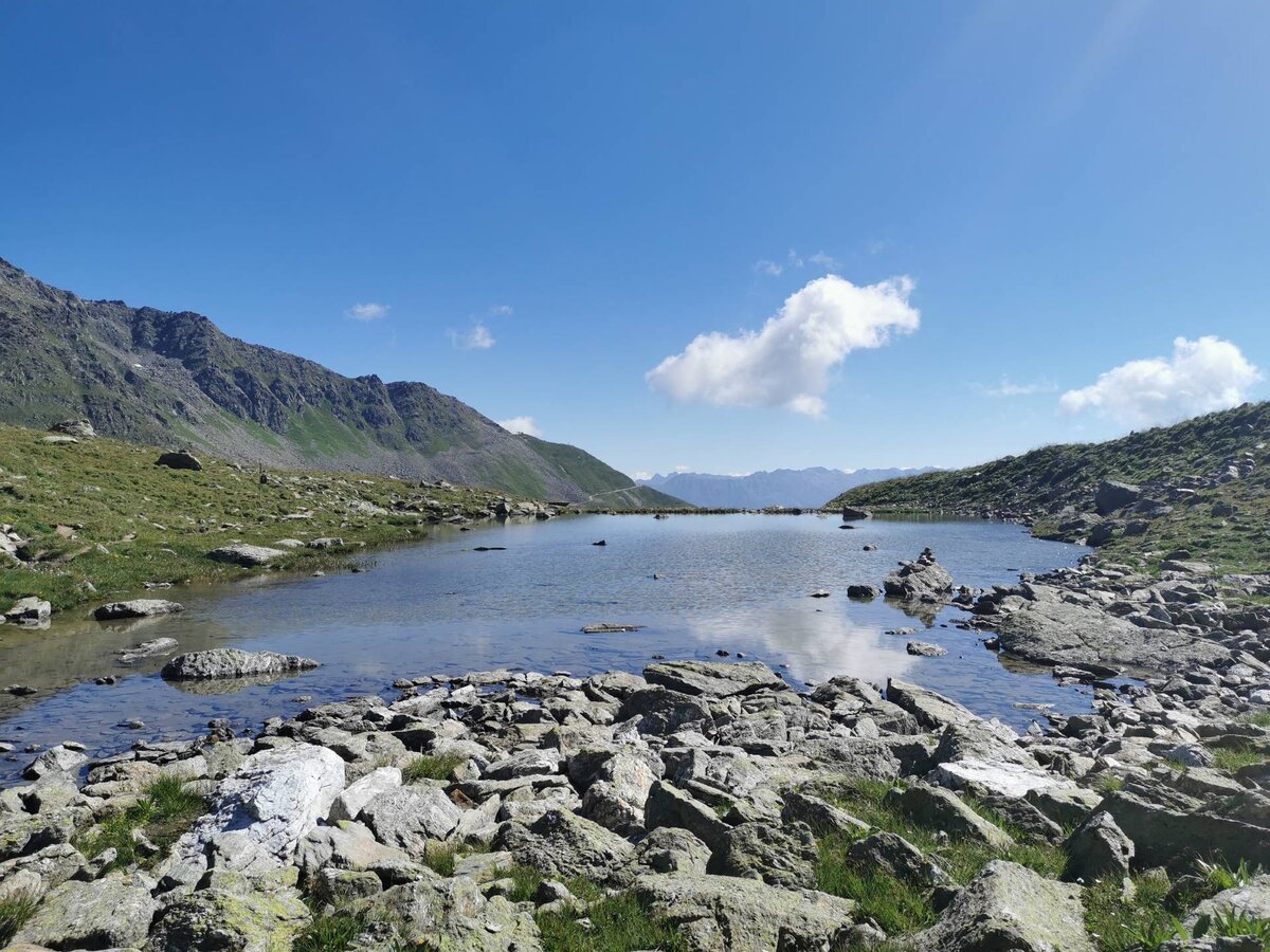 Der Weg ist landschaftlich sehr ansprechend und abwechslungsreich. Wir wanderten über steinige Untergründe, vorbei an saftigen Bergwiesen und bestaunten unterwegs einige klare Bergseen und Gebirgsbäche. Während unserer Wanderung hatten wir sogar das Glück und konnten ein Murmeltier erspähen und das Pfeifen der süßen Nagetiere wahrnehmen. Ich kannte dieses Gebiet bisher nur vom Skifahren im Winter und so war es wirklich erstaunlich, welch abwechslungsreiche Vegetation sich unter der sonst so dicken Schneedecke verbirgt. Immer wieder legten wir eine kurze Pause ein, um den schönen Ausblick, der sich uns erbot, auf einem Foto festzuhalten. Der Steig verläuft relativ eben, mit nicht allzu großen Höhenunterschieden. Kondition und Trittsicherheit sind bei dieser sechsstündigen Tour allerdings Grundvoraussetzungen. Zudem sollten feste Schuhe für die Wanderung gewählt werden. Grundsätzlich ist der Pfad aber auch für Familien mit größeren Kindern geeignet, sofern diese sich sicher im alpinen Gelände bewegen.