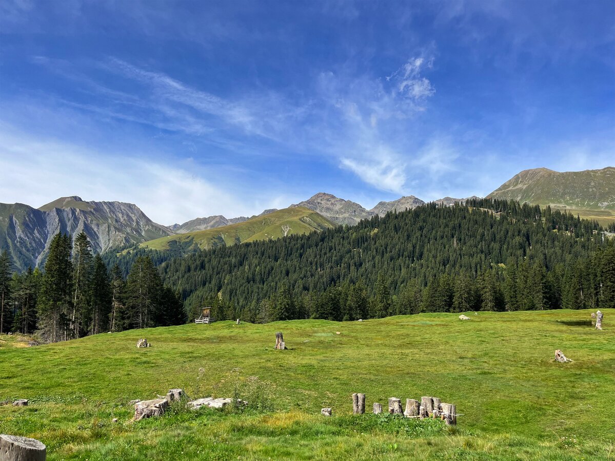 Die Wanderung schlängelt sich auf einem schmalen Pfad durch ein dichtes Waldgebiet, dessen sattgrüne Baumkronen für angenehme Kühle sorgen. Immer wieder bietet sich dabei ein beeindruckender Panoramablick auf das Dorf Serfaus und die umliegenden Berge. Auf etwa zwei Dritteln der Strecke erreicht man einen Aussichtspunkt mit einem großen Holzkreuz und einem Blick auf die umliegende Landschaft – der perfekte Ort für eine Rast und um die Stille der Natur zu genießen. Während der Wanderung hat man auch die Möglichkeit, den ein oder anderen Pilz zu entdecken. In einem unserer anderen Blogbeiträge erfährt man alles über die Schätze aus dem Wald und was man darüber wissen sollte.