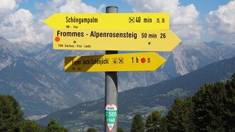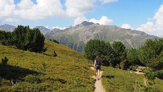 Nach etwa zwei Stunden Gehzeit erreicht man die Schöngampalm, die nicht nur mit einem köstlichen Essen verwöhnt, sondern auch ein idealer Ort für Familien ist. Hier gibt es einen netten Spielplatz, auf dem sich die Kleinen richtig austoben können und sogar einen Streichelzoo. Nach den zahlreichen Zirbenbäume am Wegesrand bekommt man sicherlich Lust auf einen Zirbenlikör. Auf der Schöngampalm kann man sich diesen als perfekten Absacker gönnen.
