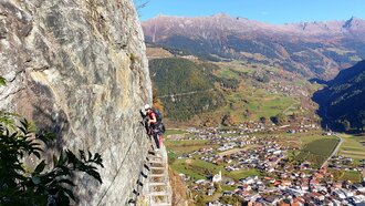 Klettersteige in Ladis. Das erste Mal die Burg Laudeck erobern – auf gleich drei verschiedenen Routen. Zwei davon führen als spannende Klettersteige hinauf, der dritte ist ausschließlich für den Abstieg gedacht. So aussichtsreich ist kaum eine Kletterpartie. Schon ausprobiert?