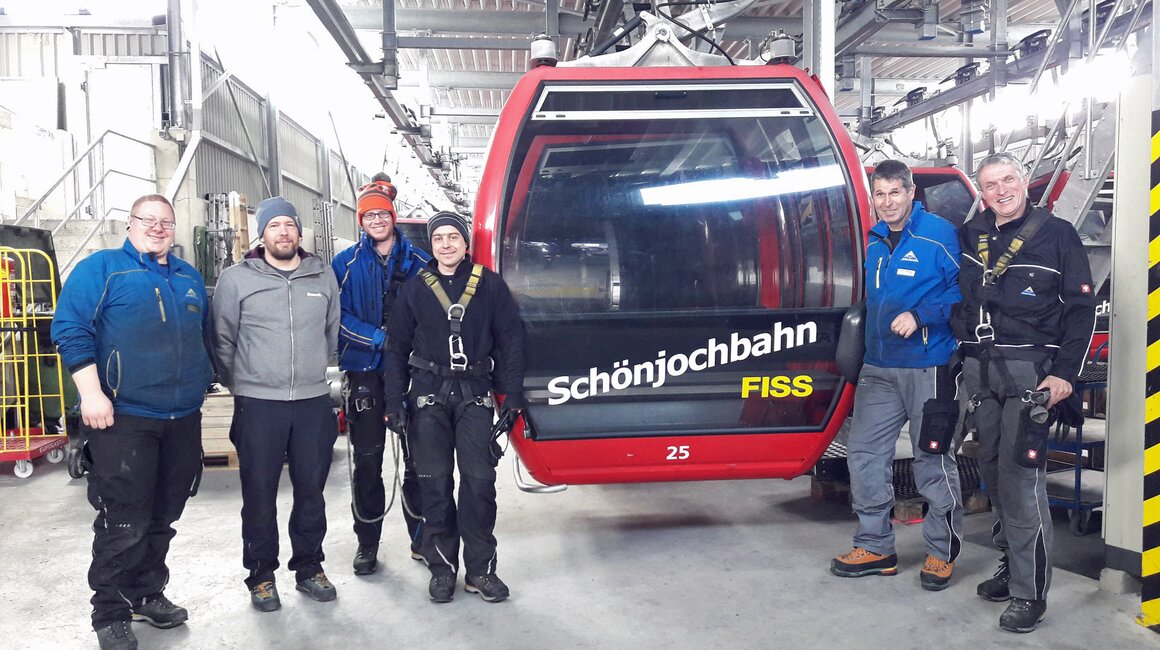 Um 8.00 Uhr traf ich mich mit Martin Steinlechner, einem der drei Betriebsleiter der Bergbahnen Fiss-Ladis. Martin erzählte mir, dass insgesamt 26 Mitarbeiter bei den Revisionen der Bahnen mitarbeiten. Allein bei der Schönjochbahn, die aus zwei Sektionen besteht, sind zwischen sechs und zehn Mitarbeiter für die Revisionsarbeiten zuständig. Sobald die Saison wieder beginnt, wechseln einige treue Mitarbeiter in den Saisonbetrieb der Bergbahnen und sind für die Betreuung der Gäste oder, unter anderem, für die zwei Genussgondeln (im Sommer) zuständig.