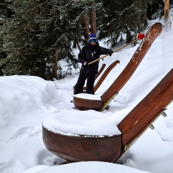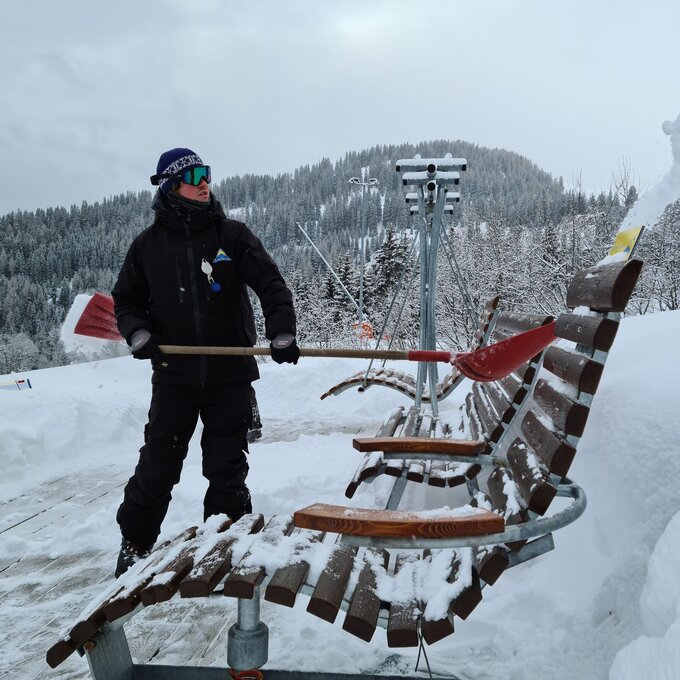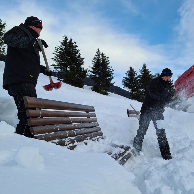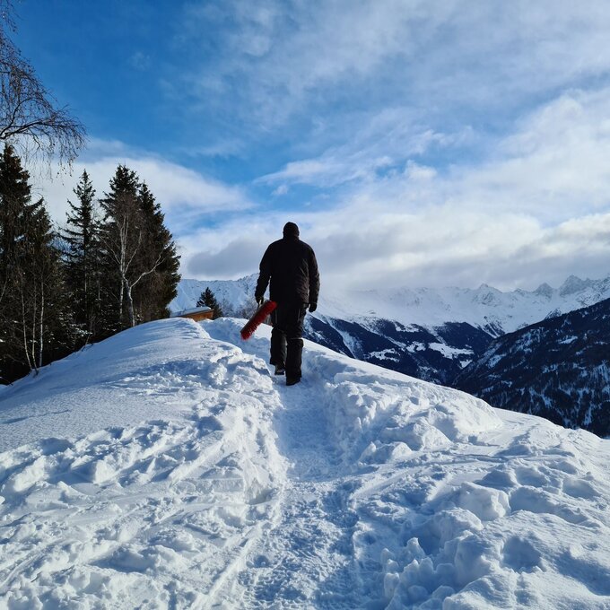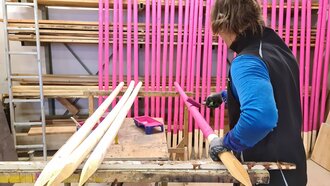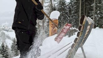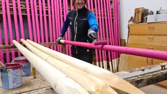 Außen pfui, innen hui bzw. emsiges Treiben. Während die Natur draußen in himmlisches Weiß getunkt wird, wird in den Werkstätten zu deutlich kräftigeren Farben gegriffen und eifrig gestrichen und gewerkelt. Damit du als Winterwanderer auch immer auf dem richtigen Weg bleibst, säumen bunte Stecken die rund 100 km Winterwanderwege am Hochplateau. Diese sind dir bestimmt beim Wandern schon ins Auge gestochen. Und da selbst in der bunten Welt von SFL keine magentafarbenen Bäume gedeihen, sorgt Andi in seiner Werkstatt für den nötigen Farbklecks in der Natur. Ruckzuck werden die Rundhölzer für ihren Dienst im Freien gestrichen.