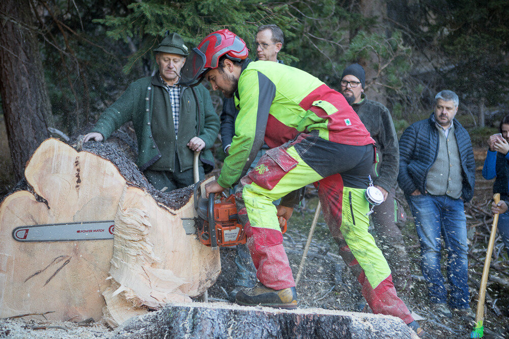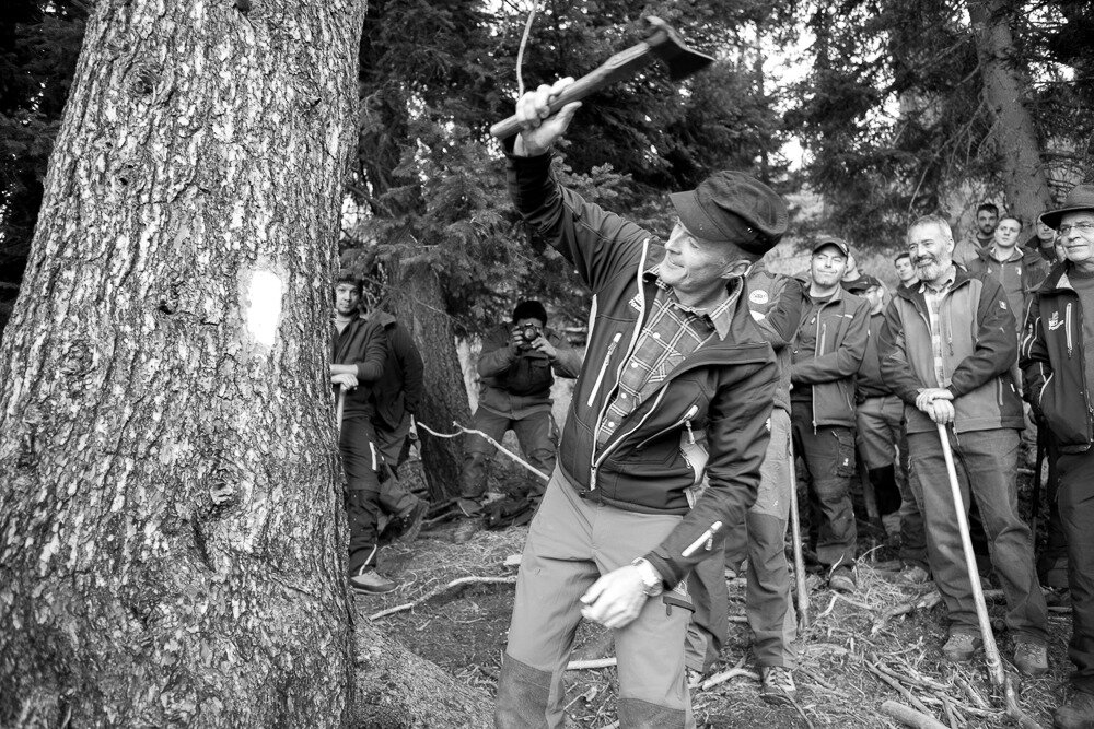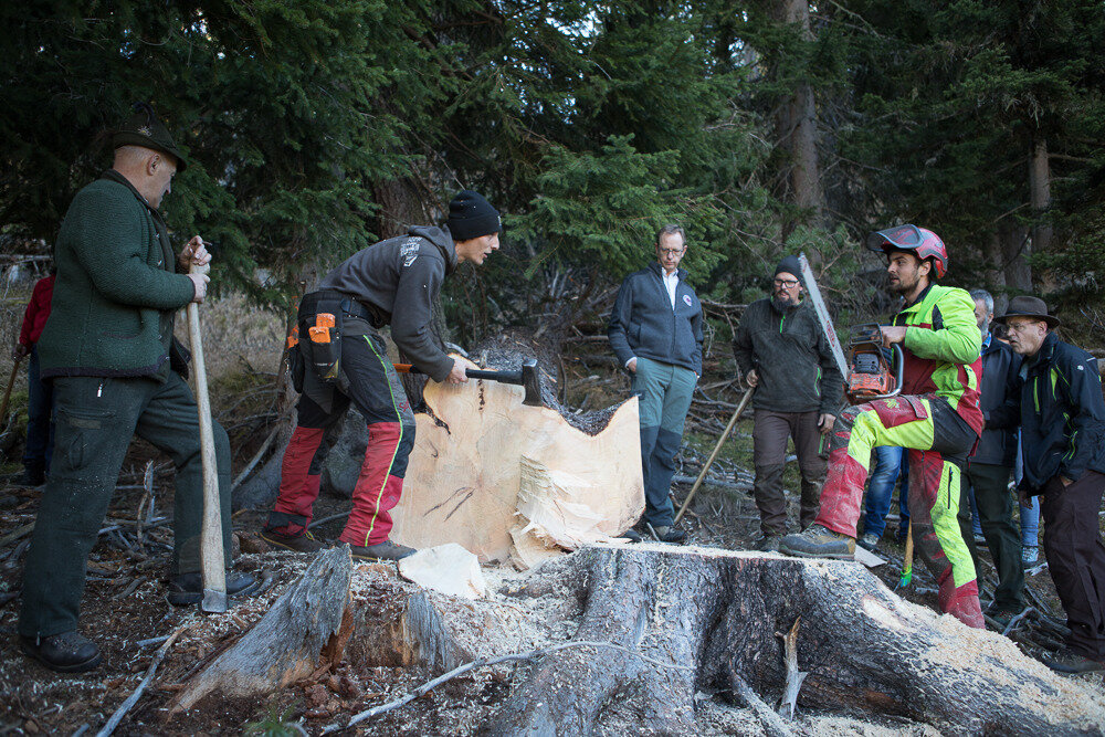 Schaffen es die Teilnehmer, den Baum zum „Fonnes“ (Fisser Dorfplatz) zu ziehen, so übernimmt der Bürgermeister, Mag. Markus Pale, das Zepter und wird zum Auktionator.