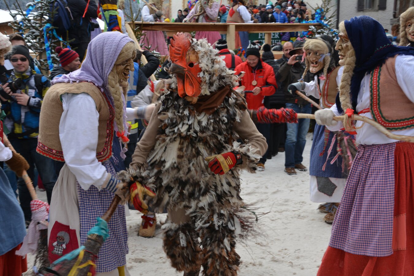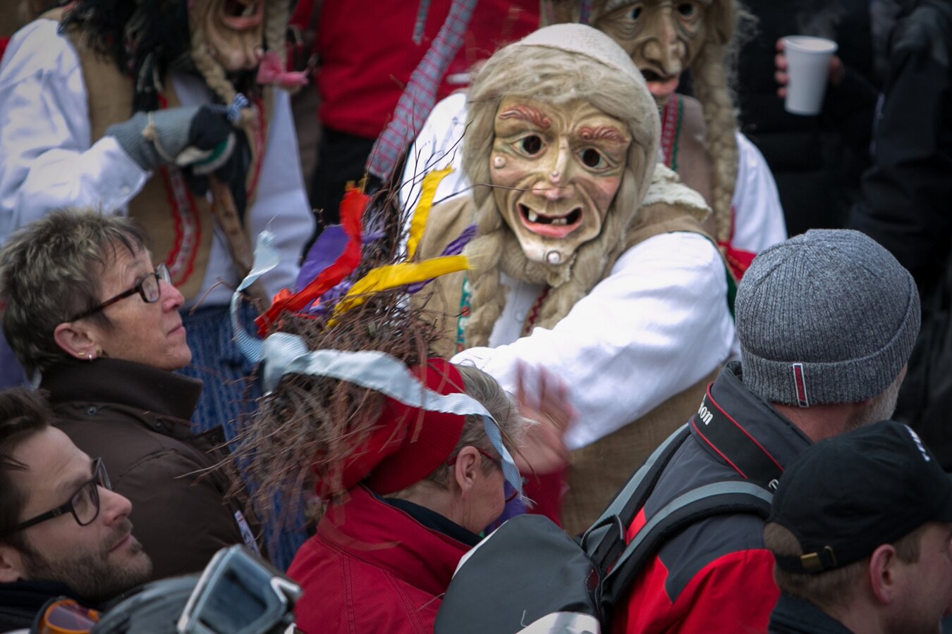 Um 13.00 Uhr gibt es dann den ersten Umzug aller Maskierten, jedoch ohne die Hauptfiguren. Der Bär und der Miasmann sind noch nicht dabei. Auch der Bloch wartet noch auf seinen Einsatz.
