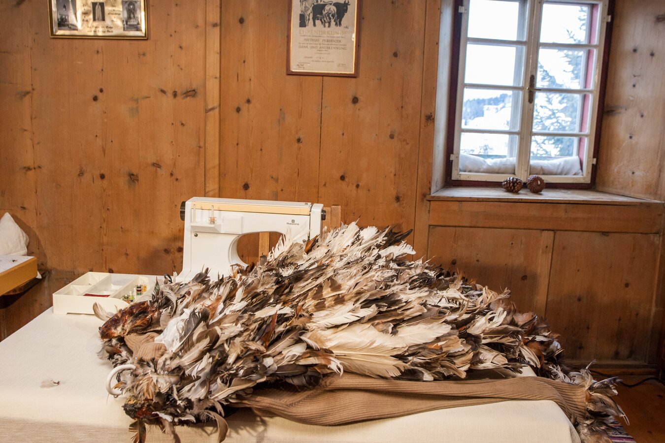 Markus: „Der rote Lebensfaden symbolisiert die Kraft. Er macht den Bär stärker und wilder. Diese Kraft benötigt er beim Umzug nötigst. Während der Bär den Bloch zieht, treibt der Giggeler seine Späße und bespringt eine Hexe oder die ein oder andere Dorfschönheit.“