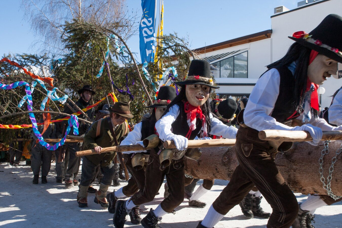 Christoph: Das Blochziehen beginnt im Oktober, wenn der Blochbaum aus dem Fisser Wald geholt wird. Du warst natürlich auch dabei. Erzähl uns etwas über den Ablauf.