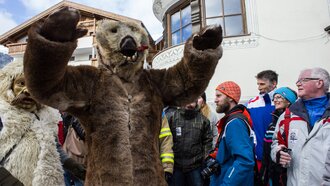 Im November 2016 entschieden wir uns, ein neues Bärenkostüm fertigen zu lassen, da dieses nach über 50 Jahren sehr mitgenommen war. Eine große und gleichzeitig auch heikle Aufgabe. Nach den ersten Skizzen wurde der Pfundser Schnitzer Reinhard Thöni damit beauftragt, den Bärenkopf zu schnitzen. Weitere Tiroler Firmen bekamen die Aufgabe, ein haltbares Bärenfell auszusuchen und der fertige Bärenkopf musste natürlich auch noch mit dem Fell überzogen und bemalt werden. Die Zusammenarbeit klappte bestens und so durfte der Bär im März 2017 in seine „neue Heimat“ nach Fiss übersiedeln. Ein großes Dankeschön an alle beteiligten Künstler und Firmen.