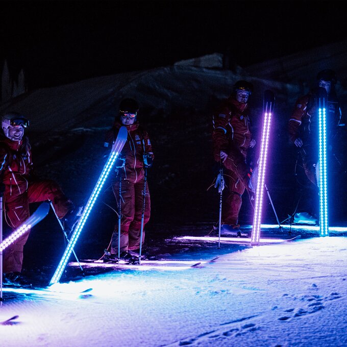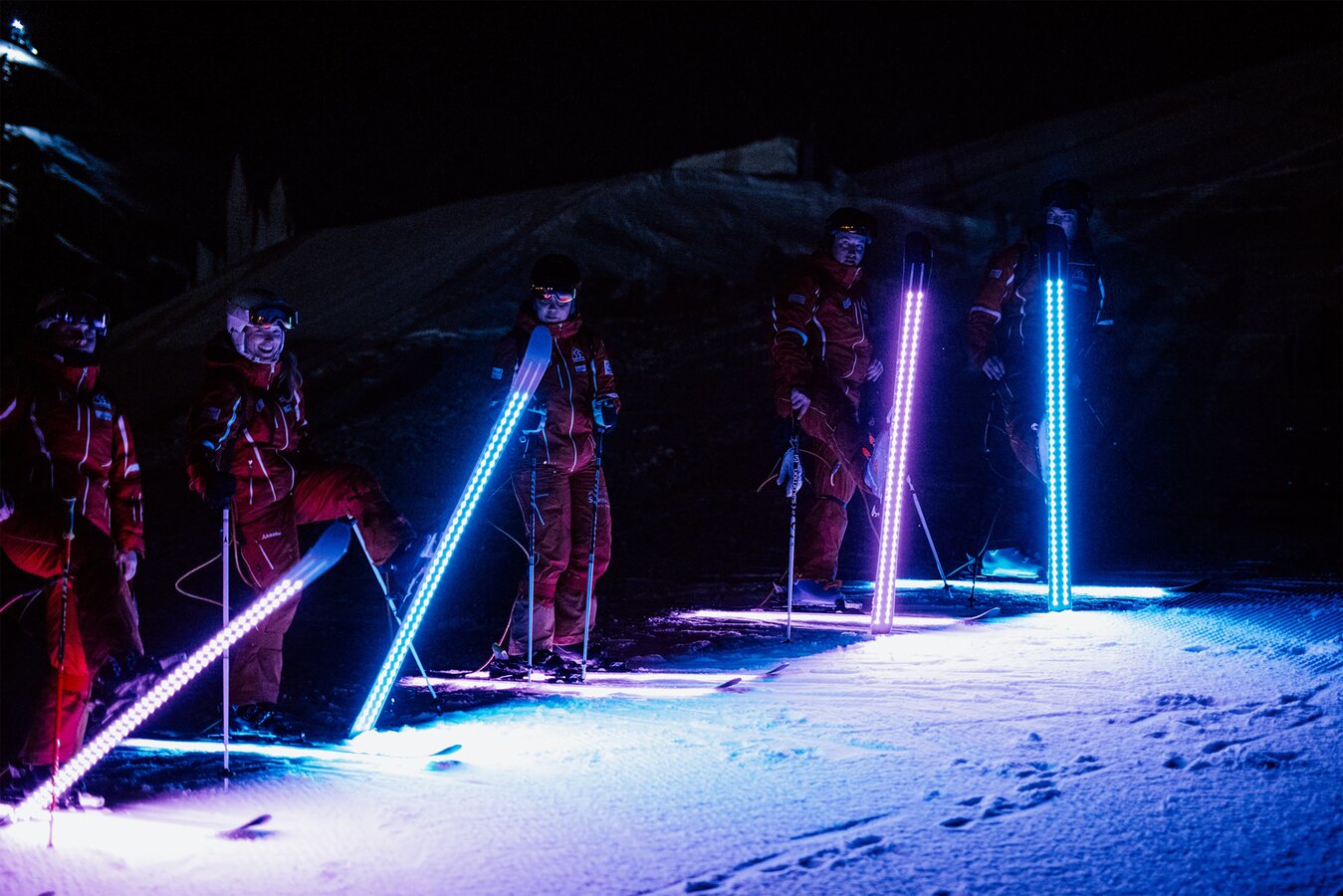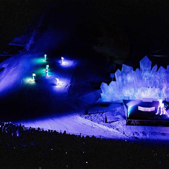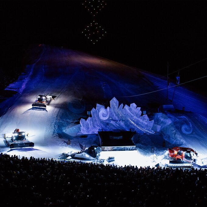 Je näher der Start der Show rückt, desto mehr Teilnehmer und Mitarbeiter trudeln ein. Insgesamt 20 Personen aus dem Bergbahnen-Team, das Springer-Team von Goffi Gram, die Fahrer von fünf Pistengeräten und 70 bis 80 Skilehrer der Skischule Serfaus sind bei jeder Adventure Night im Einsatz. Dazu kommen die Mitarbeiter von Show Express bei der Vorbereitung und weitere externe Partner wie etwa ein Akrobatenteam, das der Show das ganz besondere Extra verleiht. Was das genau heißt? Eine Tuchakrobatin bildet heuer einen der Höhepunkte der Show! Gekonnt schwebt sie über der Bühne und sorgt mit gewagten Kunststücken für ungläubiges Staunen unter den Zusehern.