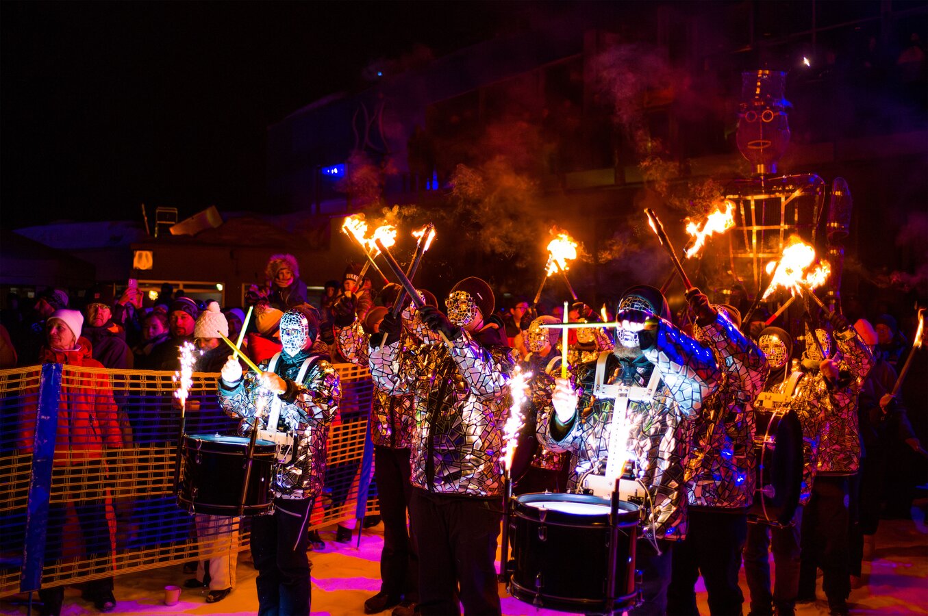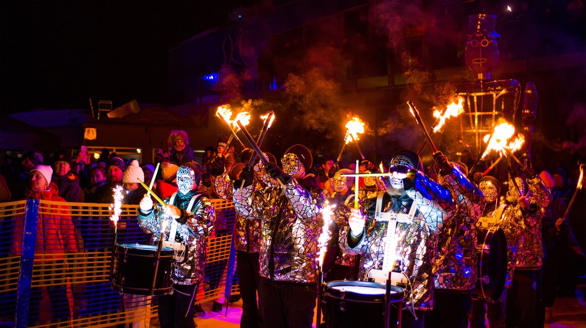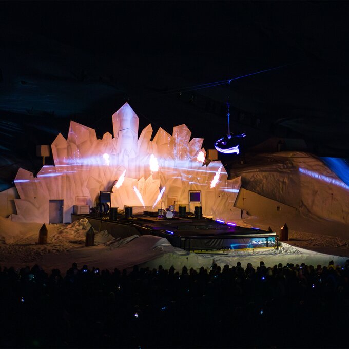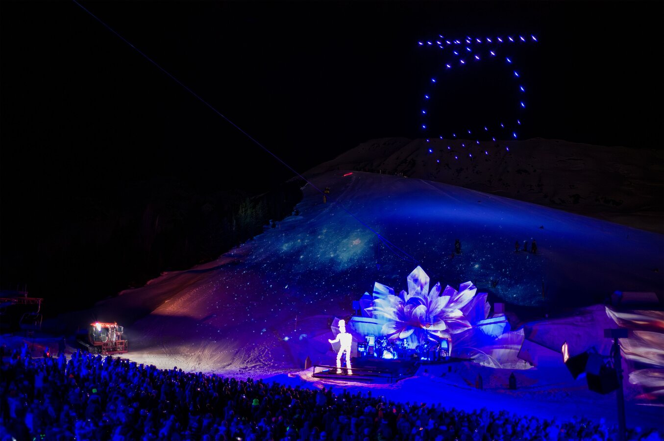 Je näher der Start der Show rückt, desto mehr Teilnehmer und Mitarbeiter trudeln ein. Insgesamt 20 Personen aus dem Bergbahnen-Team, das Springer-Team von Goffi Gram, die Fahrer von fünf Pistengeräten und 70 bis 80 Skilehrer der Skischule Serfaus sind bei jeder Adventure Night im Einsatz. Dazu kommen die Mitarbeiter von Show Express bei der Vorbereitung und weitere externe Partner wie etwa ein Akrobatenteam, das der Show das ganz besondere Extra verleiht. Was das genau heißt? Eine Tuchakrobatin bildet heuer einen der Höhepunkte der Show! Gekonnt schwebt sie über der Bühne und sorgt mit gewagten Kunststücken für ungläubiges Staunen unter den Zusehern.