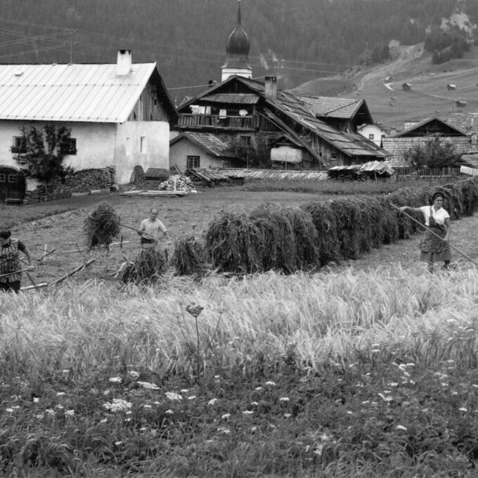 Die drei Bergdörfer blieben von den Weltkriegen weitgehend verschont. Direkte Kriegshandlungen gab es am Hochplateau zum Glück nicht. Fiss und andere Tiroler Dörfer wurden während des 2. Weltkrieges bzw. zu Beginn der Machtübernahme des NS-Regims als AUFBAUDÖRFER ernannt. Das Dorf war nämlich nach wie vor ärmlich. Die Wirtschaft wurde angekurbelt und neue Bauernhäuser wurden gebaut. „In den Fisser Höfen wurden vier neue Bauernhäuser gebaut. Sie waren topmodern: Fließwasser im Haus, Spülklosett, hellere Ställe. Es war aber schwierig, Fisser zu finden, die an den Ortsrand ziehen wollten. Einer davon war mein Vater. Er war Tischler und wurde mit einer größeren WERKSTATT gelockt“, berichtet Siegfried.