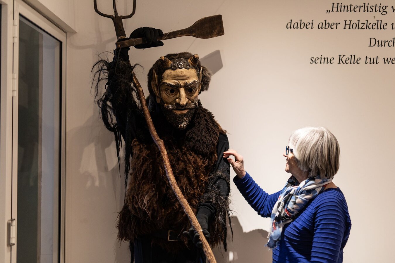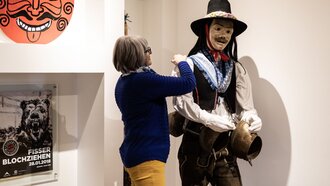 Für die Frauen beginnt die Arbeit ebenfalls Monate vor dem eigentlichen Fest: Ab dem Herbst werden Kostüme und Accessoires ausgebessert und neu gemacht. Sie selbst habe das Blochziehen allerdings auch in den Zwischenzeiten immer im Kopf, erzählt Zita. „Oft bringen mir sogar die Gäste Requisiten mit. Erst kürzlich hat mir jemand zwei Unterländer Trachtenhüte geschenkt. Ich habe sofort gedacht, dass wir diese verwenden könnten.“ Auch die Kelle, die der Schwoaftuifl in der Hand trägt, stammt aus ihrem Fundus. Was begeistert sie so sehr am Blochziehen? „Es ist der Zusammenhalt, das Gemeinsame. Schon beim Blochbaummarsch heißt es: "Mir Fiss’r halfa zåmm, ob Kind, ob Frau, ob Månn, weil miar sei stolz auf ins’r Tradition.“