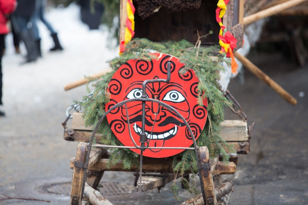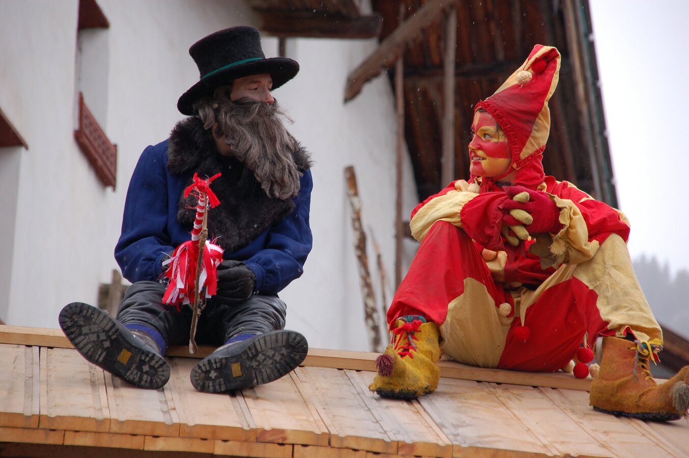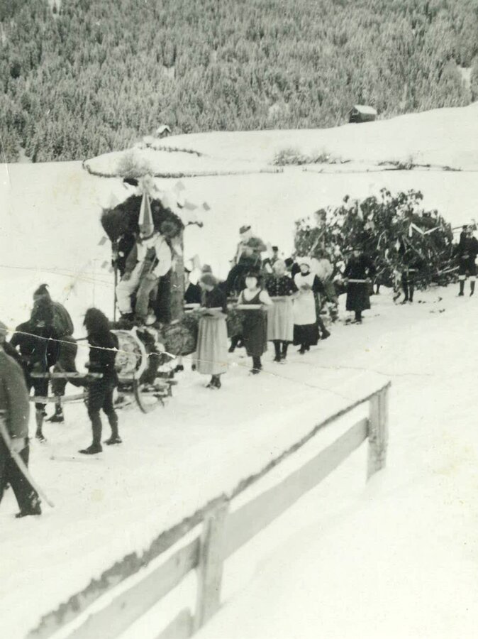 Der Bloch macht es sich dabei auf zwei Schlitten bequem. Im rätoromanischen Haufendorf müssen die Fasnachtler drei Engstellen passieren. Gar kein leichtes Unterfangen, wenn man die Länge des Baumstammes betrachtet. Obmann Christian Kofler erklärte mir, dass es zwar natürlich viel einfacher wäre, den Bloch auf Rädern durchs Dorf zu ziehen, die Kleinen es aber wie die Großen machen und den Bloch auf Schlitten durch den Ortskern ziehen. Ein wahrer Kraftakt, den die Kinder aber bestimmt wieder mit Bravour meistern werden.