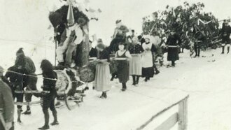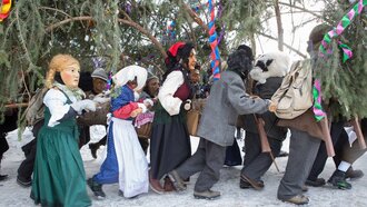 Maschgerer: Verkleidete Teilnehmer am Blochziehen